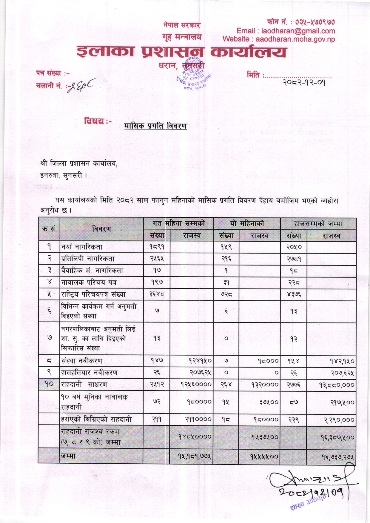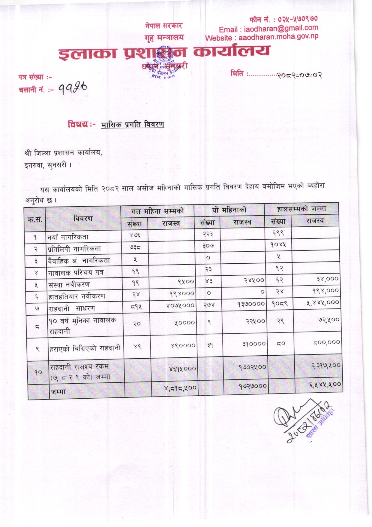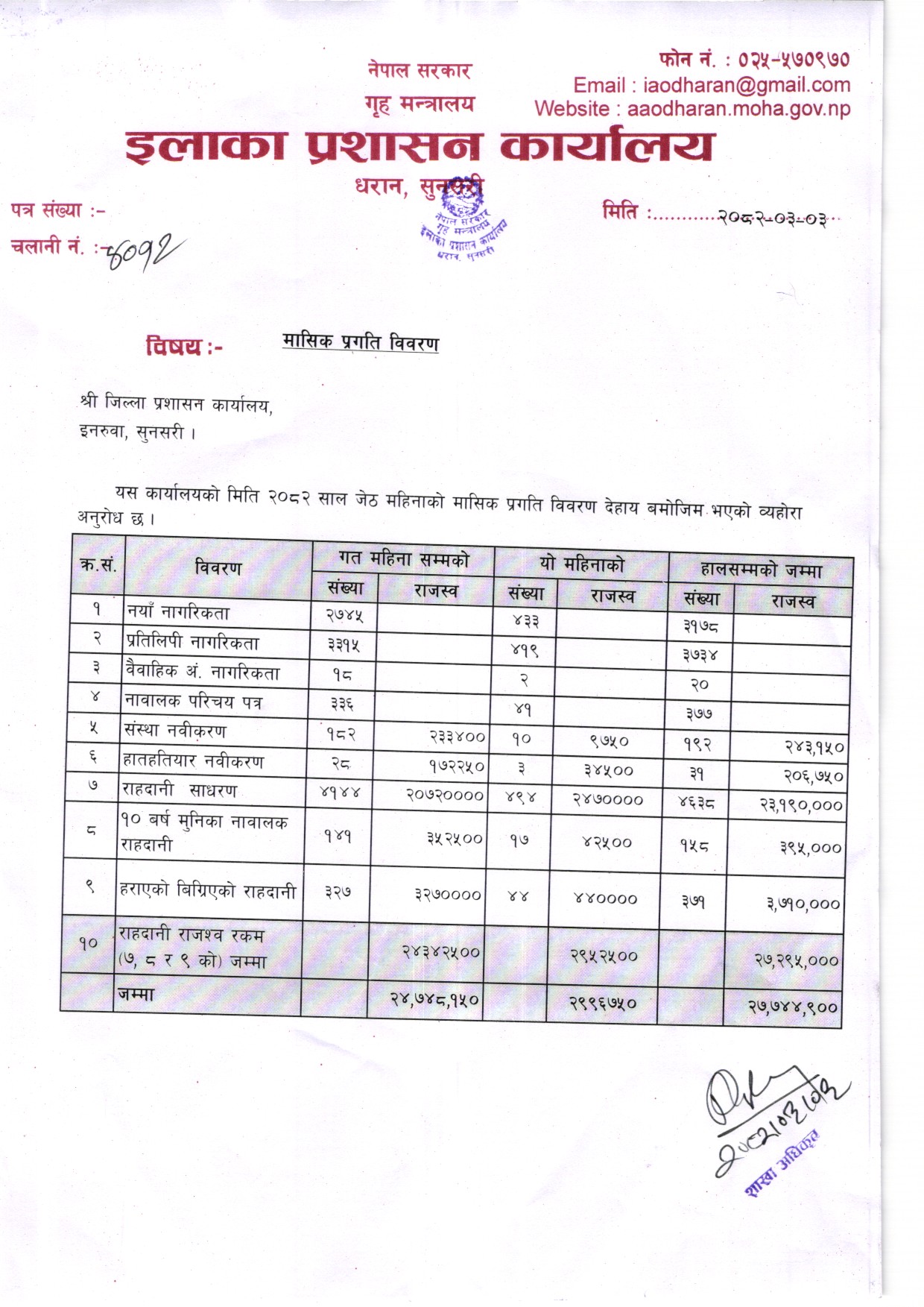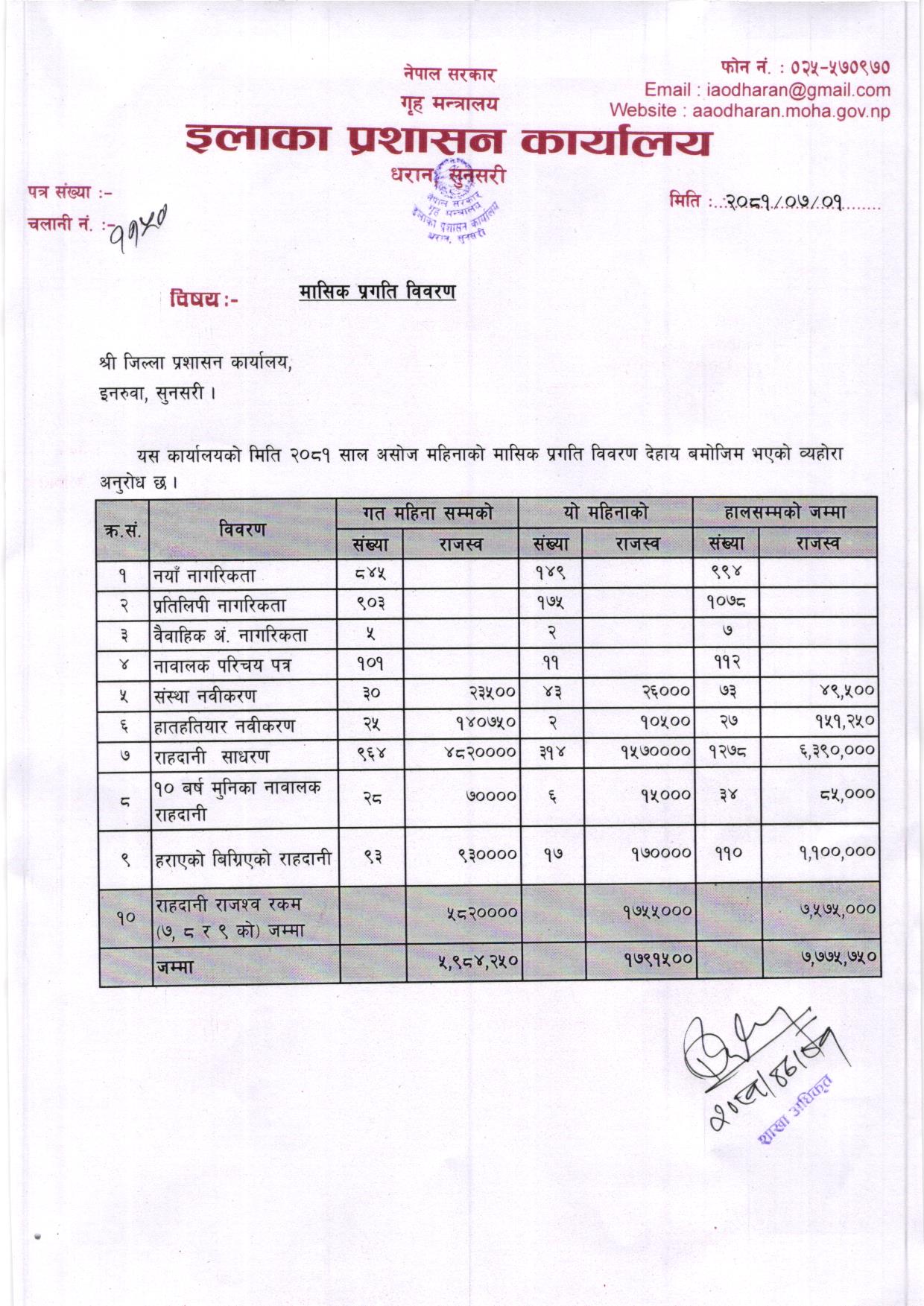 आ. ब. २०८१/०८२ असाेज महिनाकाे मासिक प्रगति विवरण
