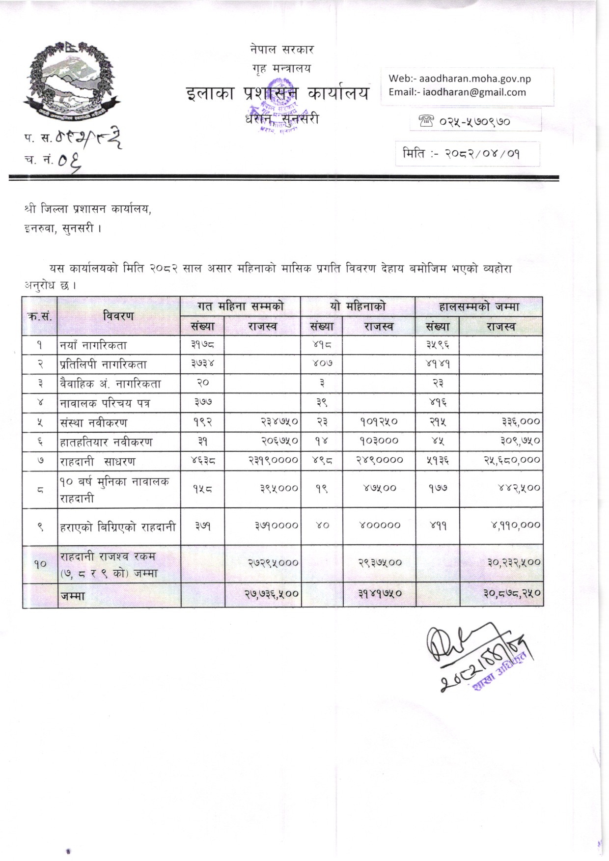 आ. ब. २०८१/०८२ काे असार महिनाकाे मासिक प्रगति विवरण