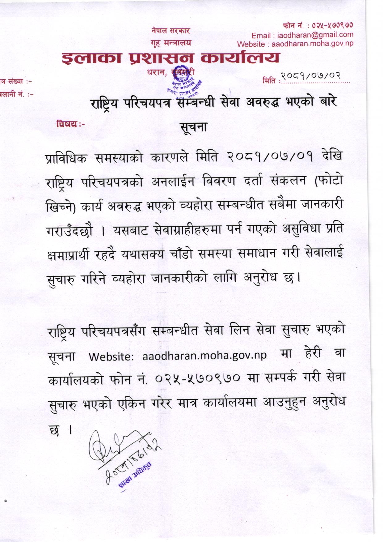 © सर्वाधिकार सुरक्षित ईलाका प्रशासन कार्यालय, धरान, सुनसरी