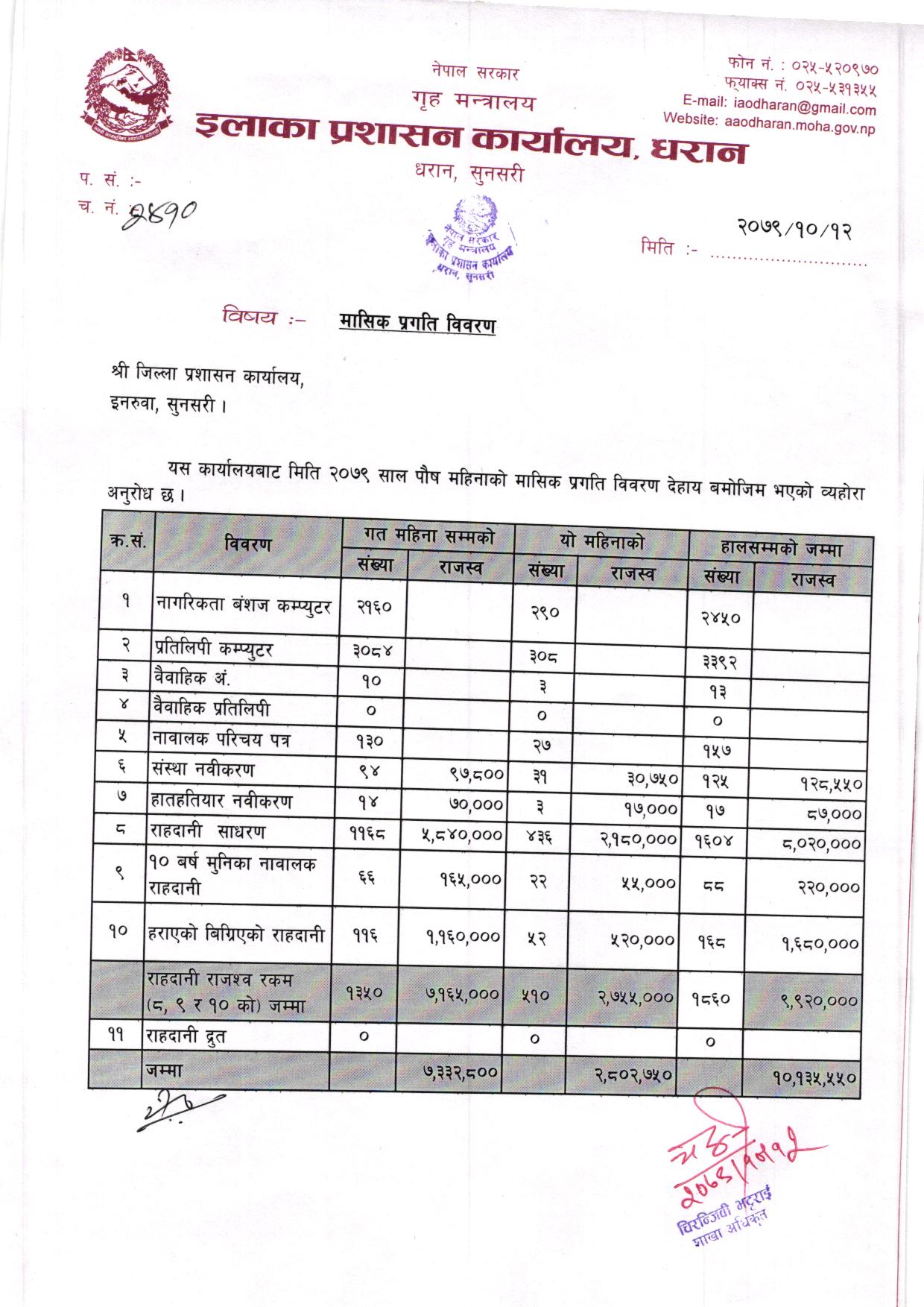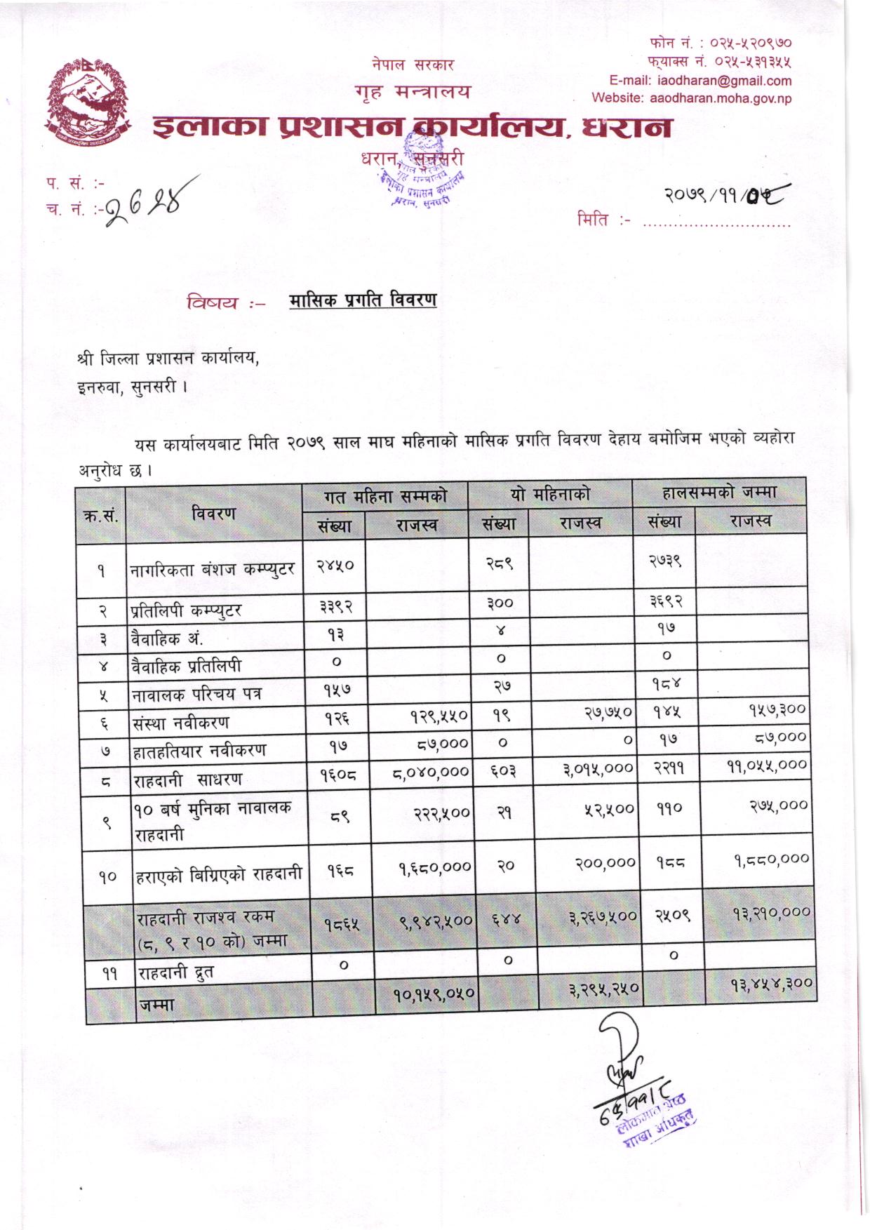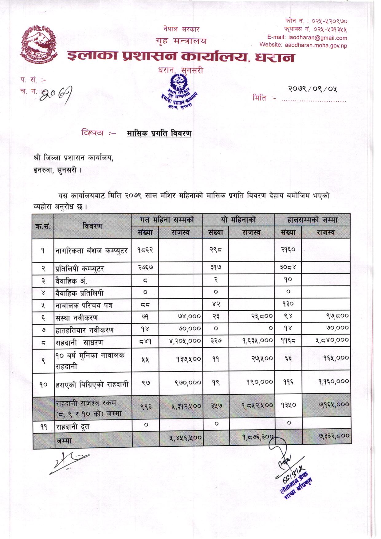 मंशिर महिनाकाे मासिक प्रगति विवरण २०७९/०८०