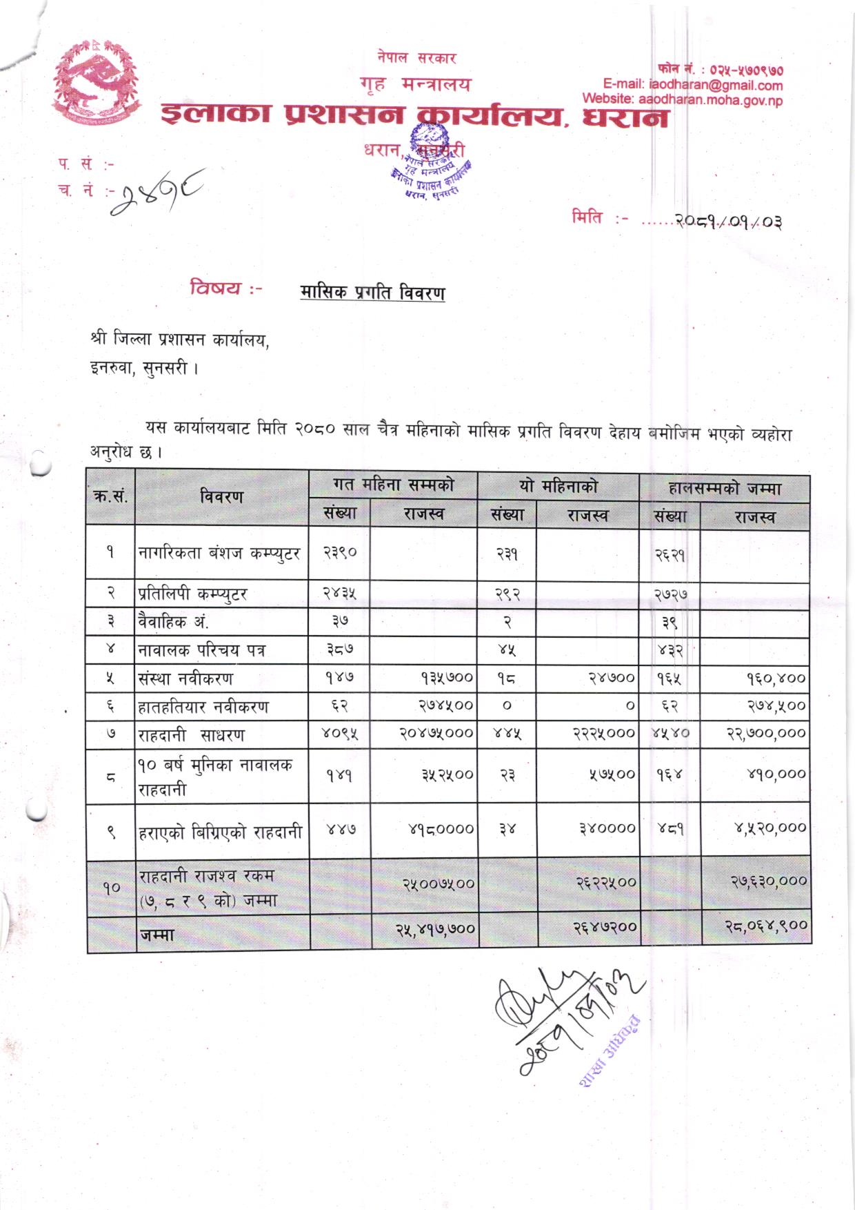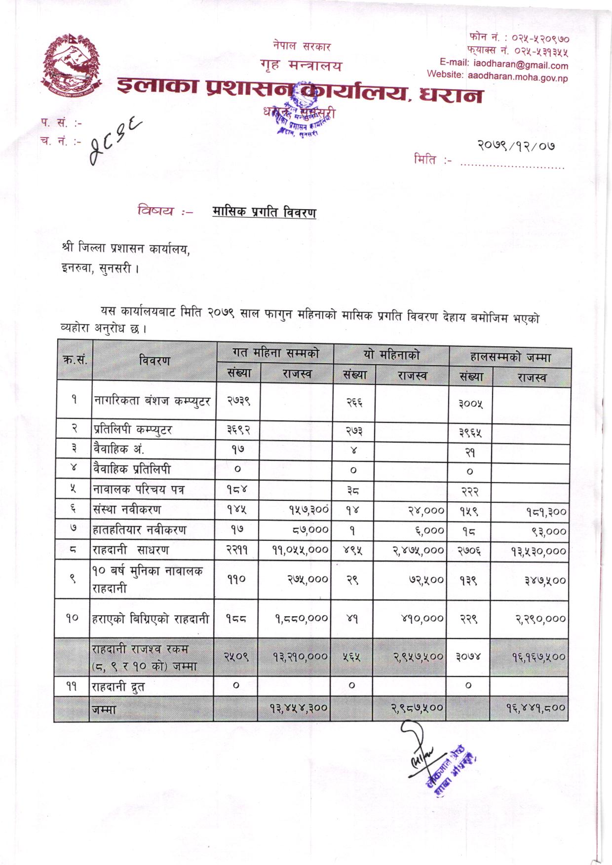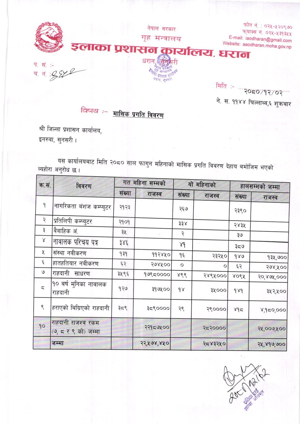 फागुन महिनाकाे मासिक प्रगति विवरण २०८०/०८१