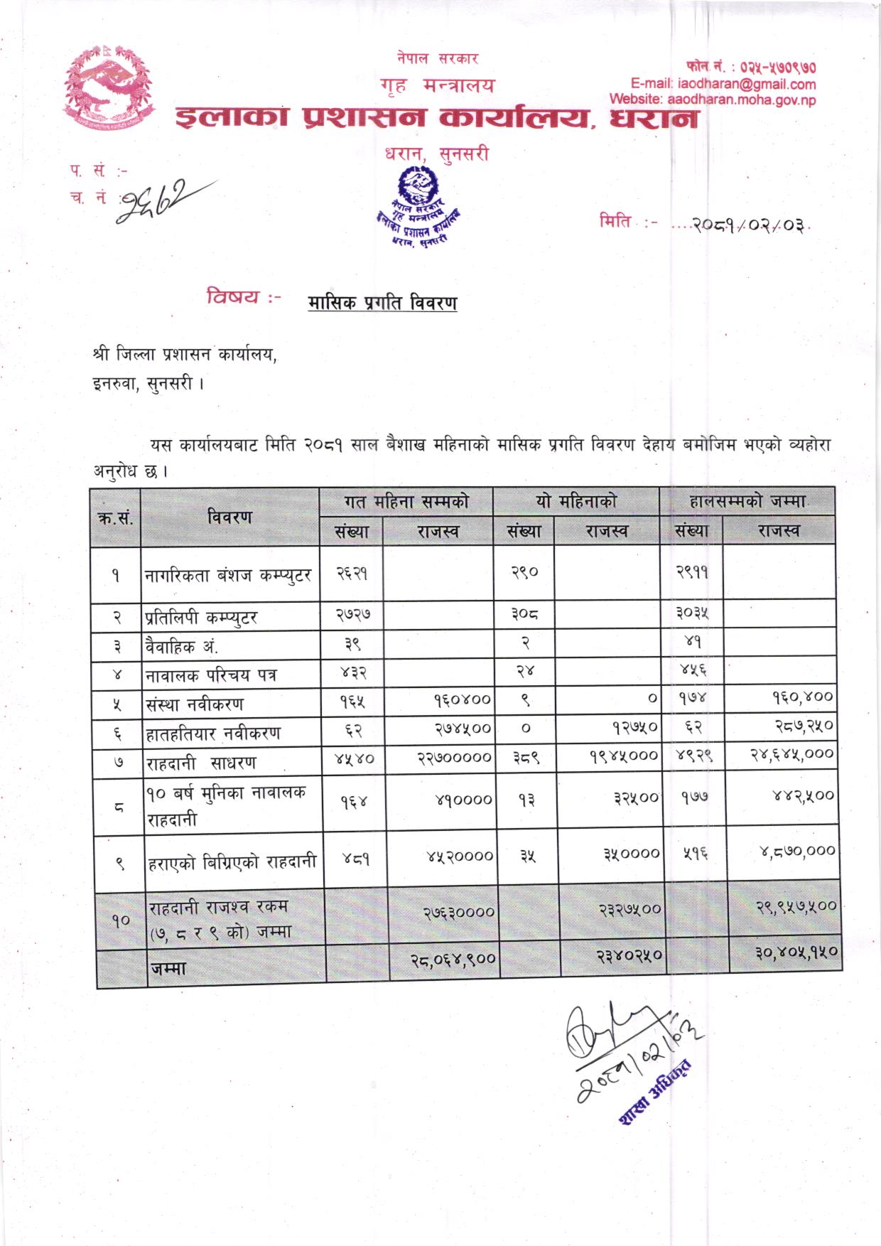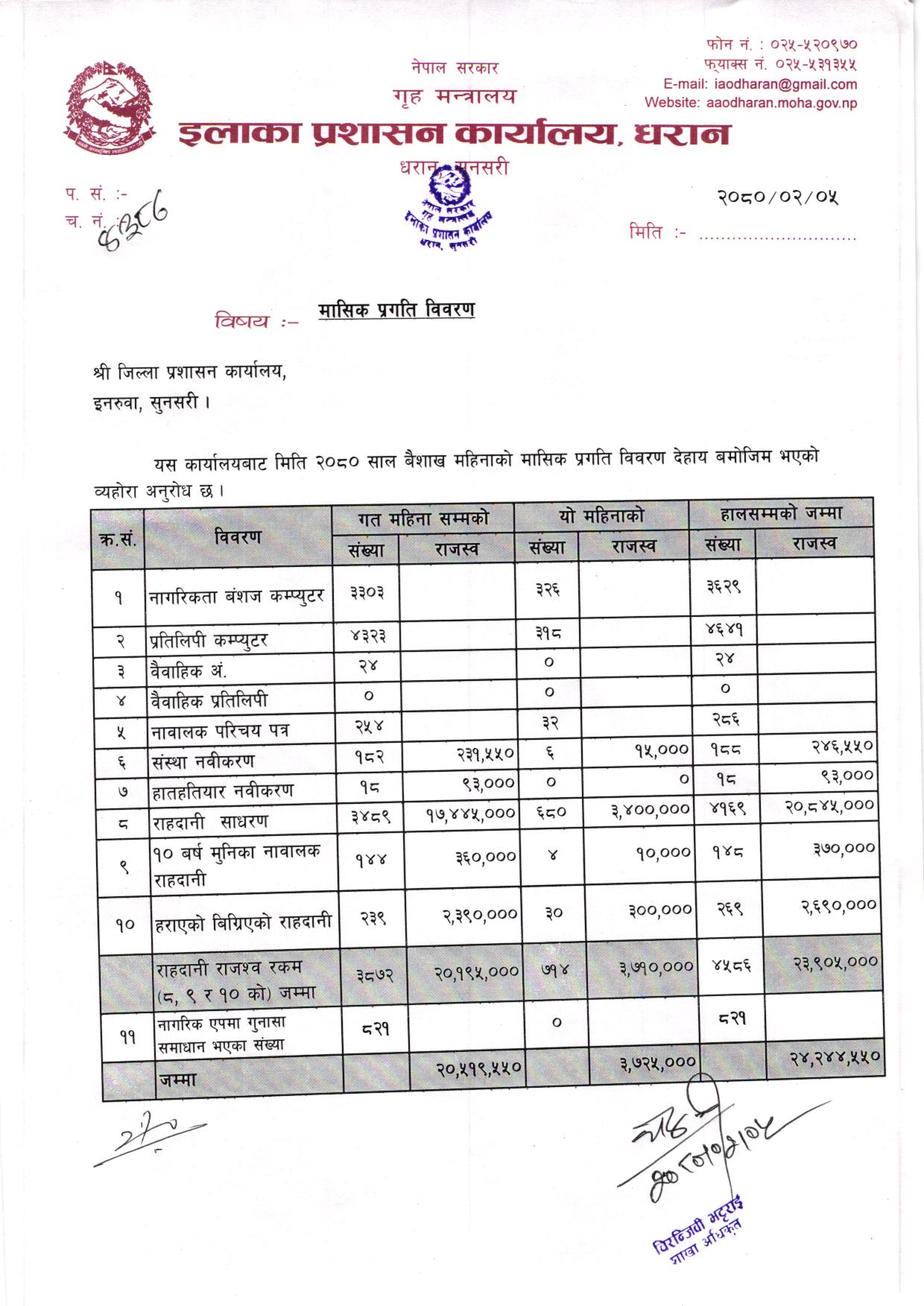 बैशाख महिनाकाे मासिक प्रगति विवरण २०७९/०८०