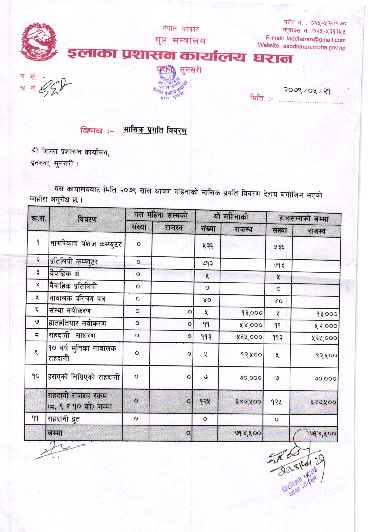 श्रावण महिनाकाे मासिक प्रगति विवरण २०७९/०८०