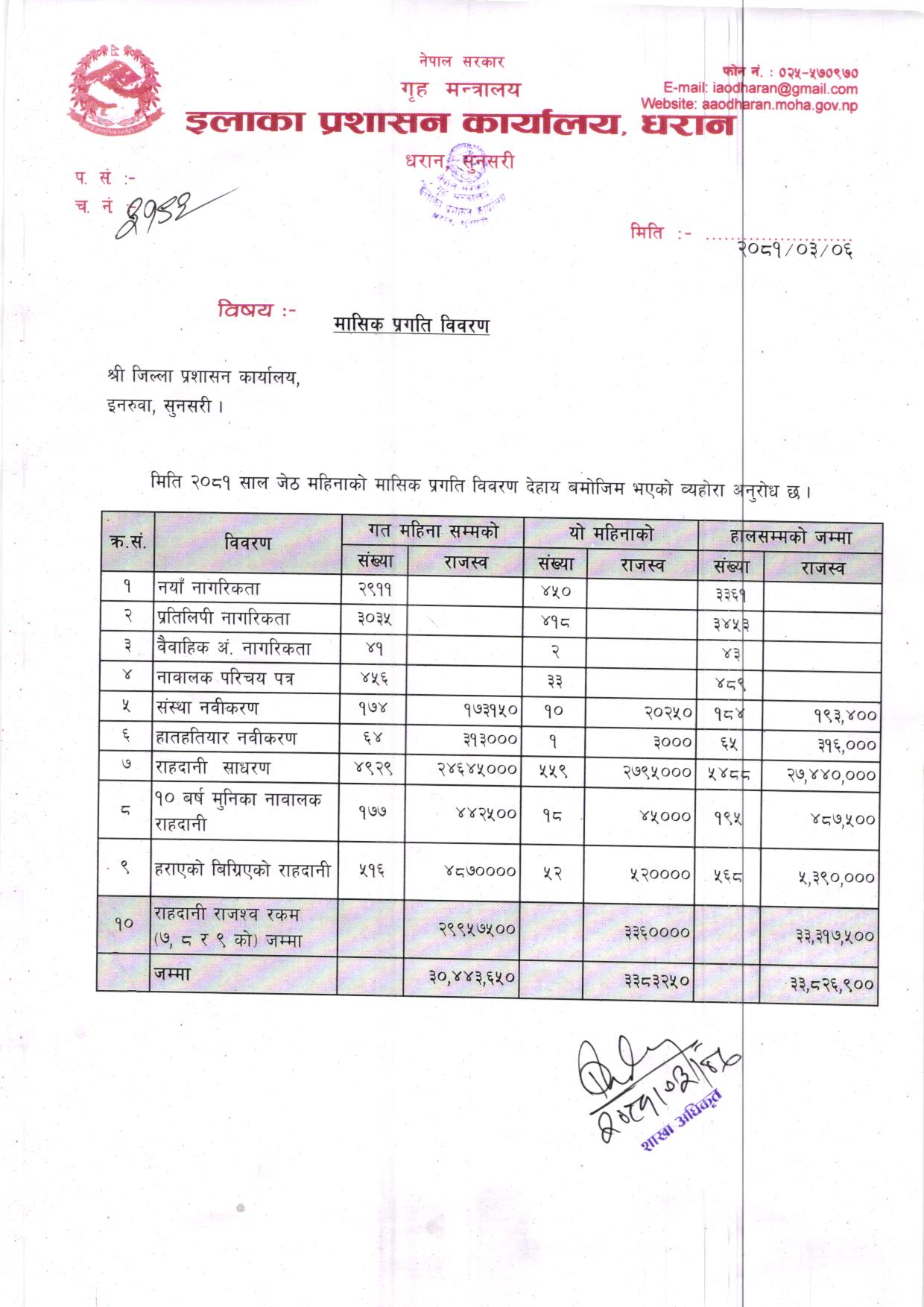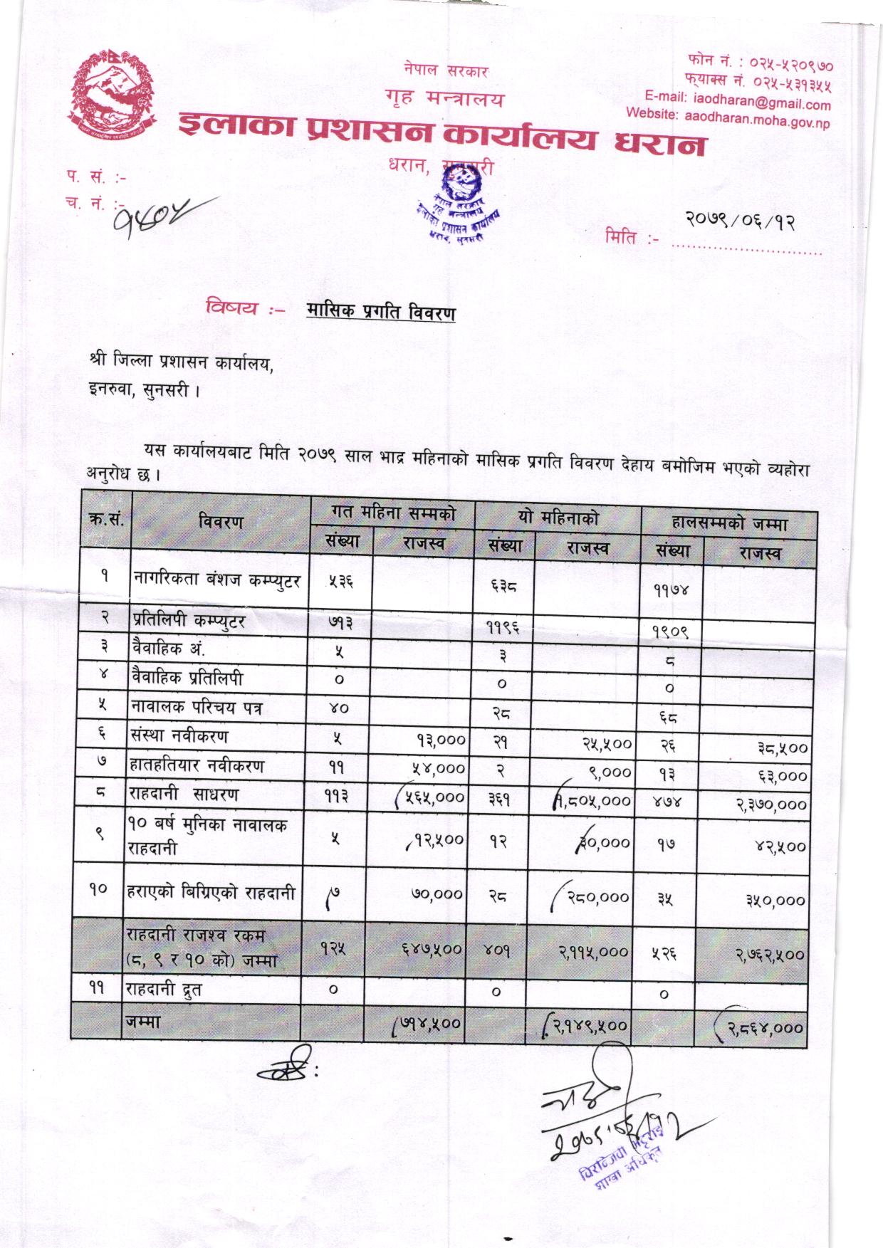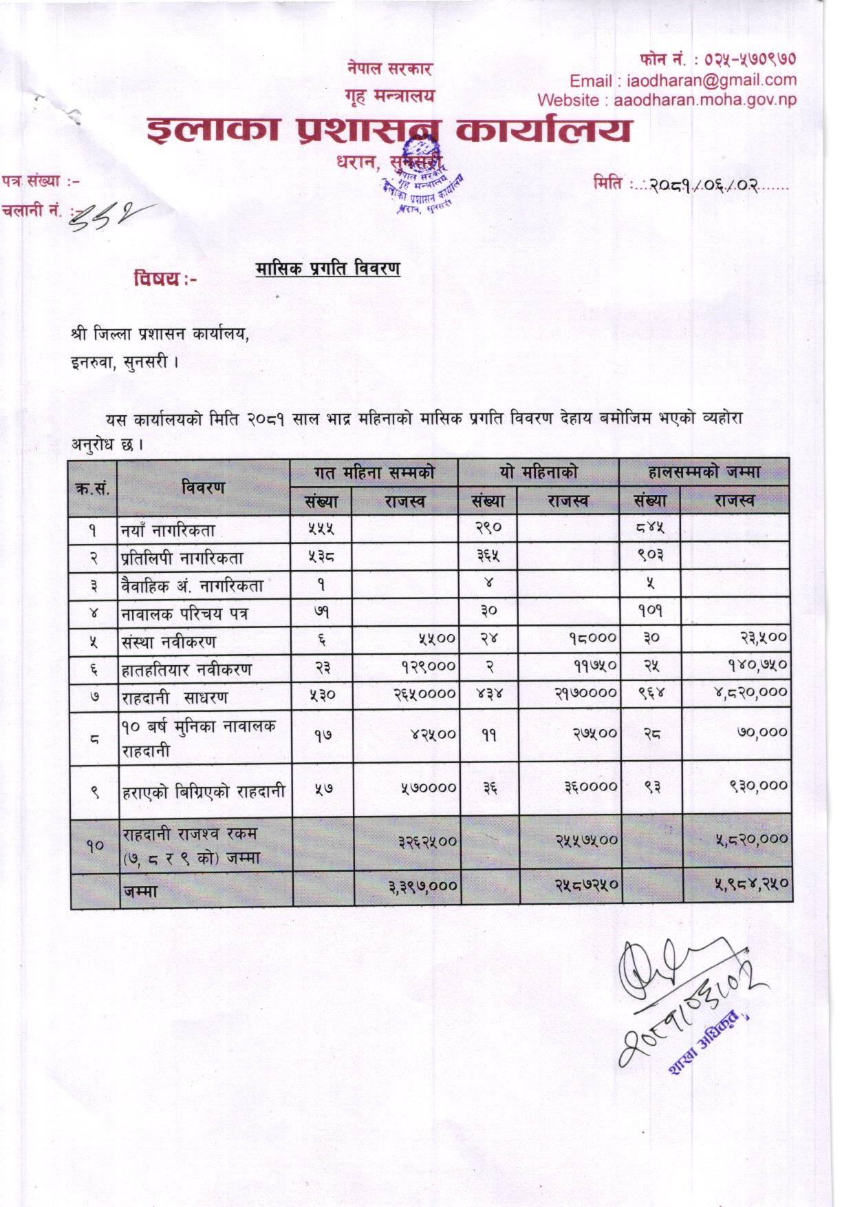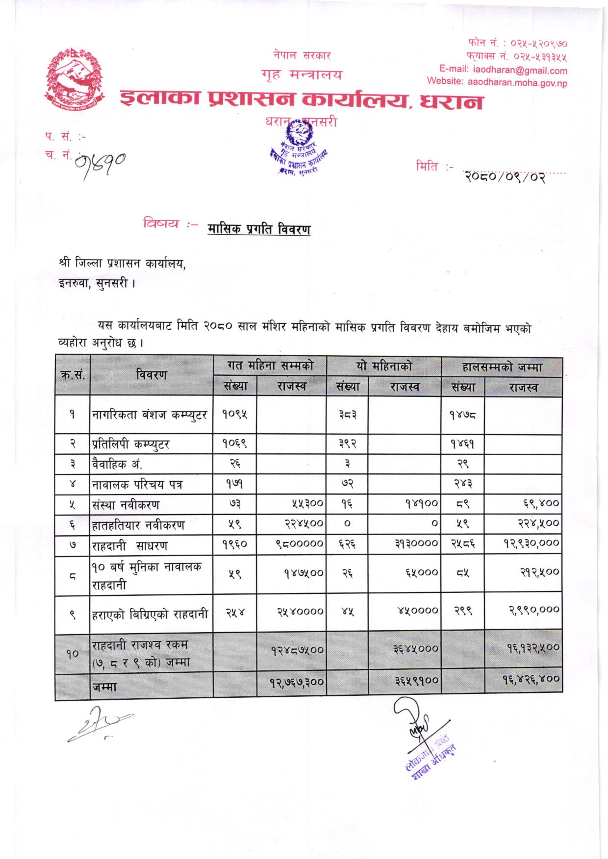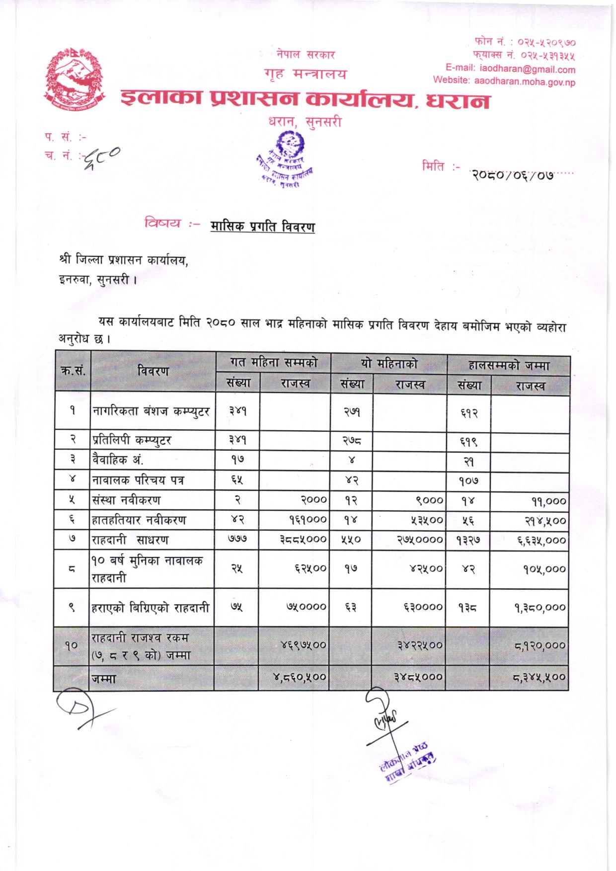 आ. ब. २०८१/०८२ भाद्र महिनाकाे मासिक प्रगति विवरण