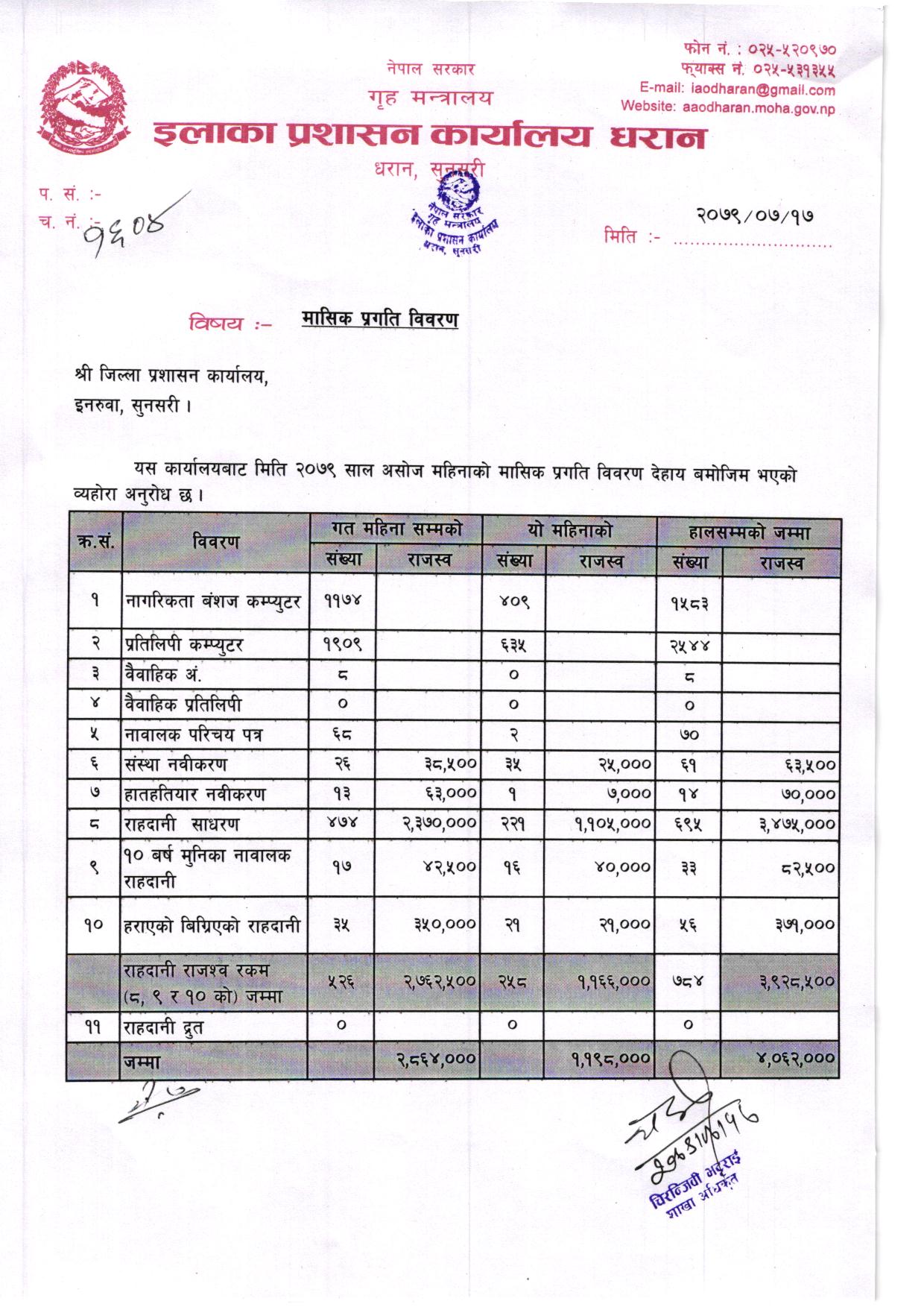 असाेज महिनाकाे मासिक प्रगति विवरण २०७९/०८०