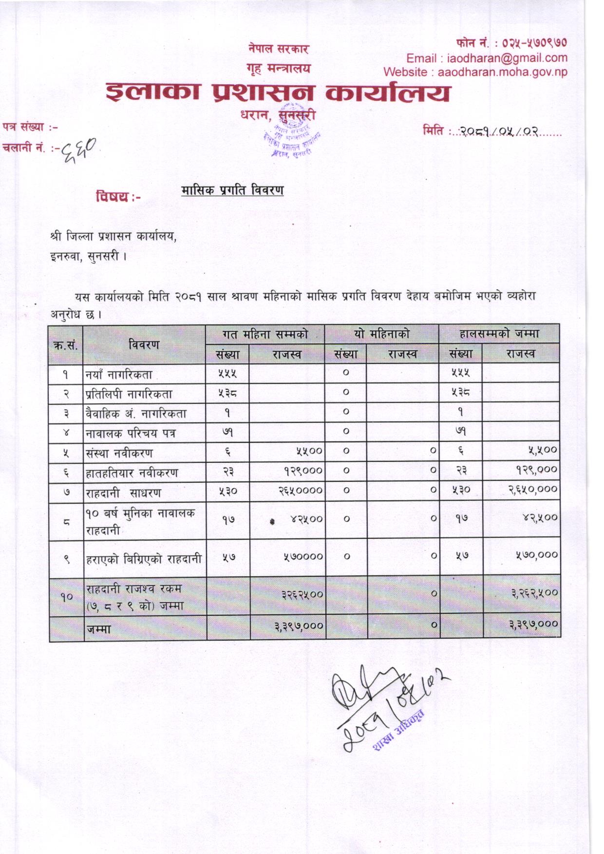 आ. ब. २०८१/०८२ श्रावण महिनाकाे मासिक प्रगति विवरण