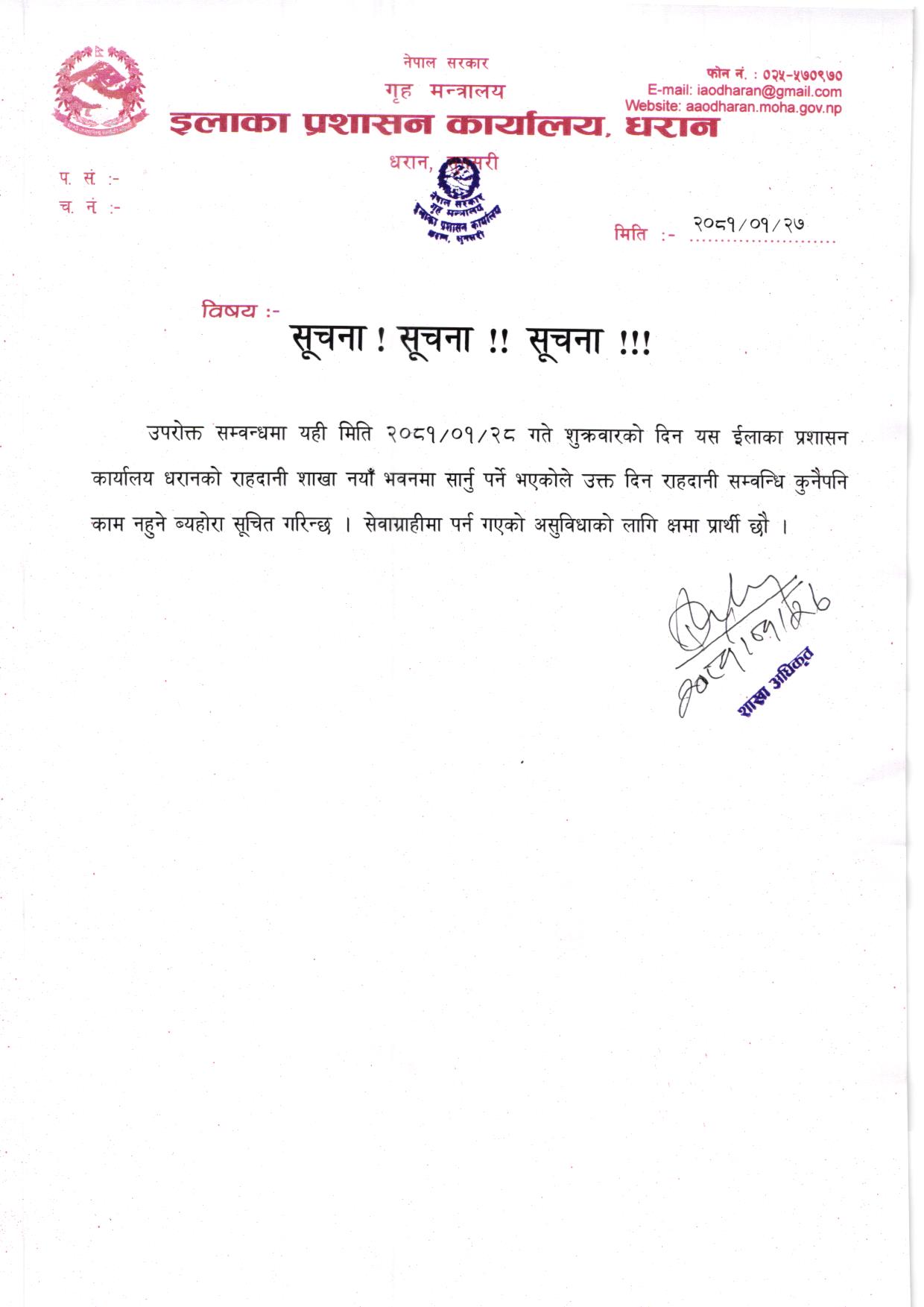 © सर्वाधिकार सुरक्षित ईलाका प्रशासन कार्यालय, धरान, सुनसरी