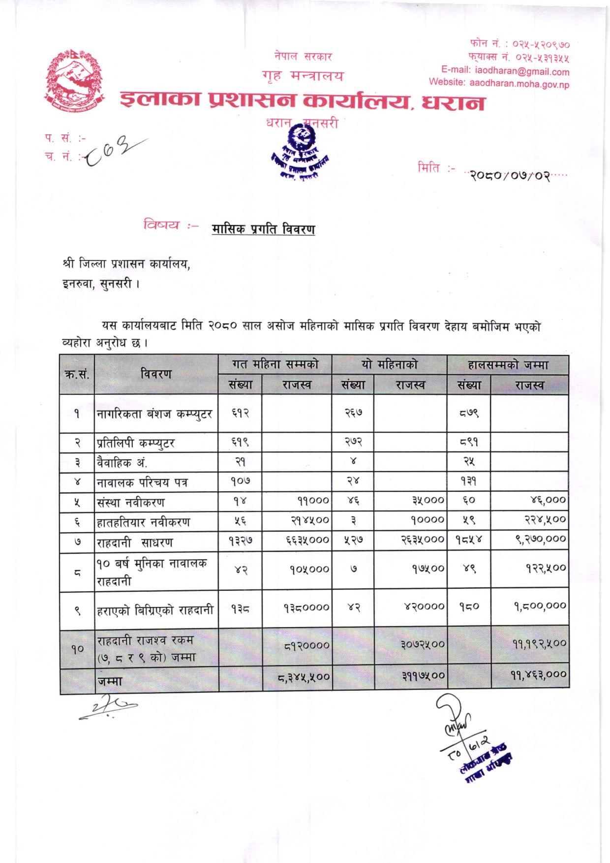 असाेज महिनाकाे मासिक प्रगति विवरण ०८०-८१