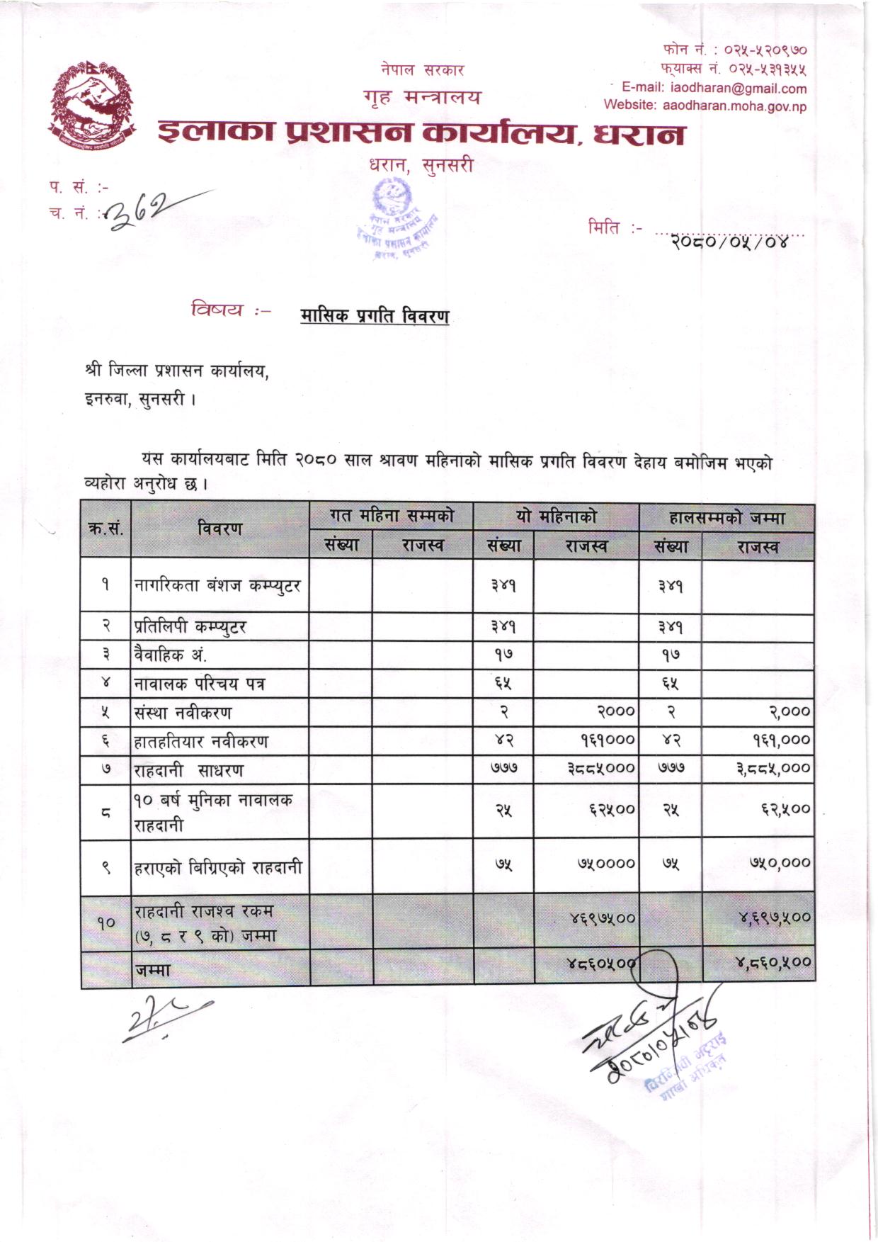 श्रावण महिनाकाे मासिक प्रगति विवरण ०८०/८१
