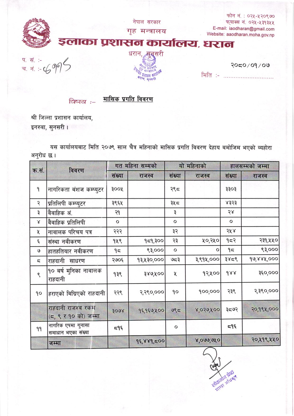 चैत्र महिनाकाे मासिक प्रगति विवरण २०७९/०८०