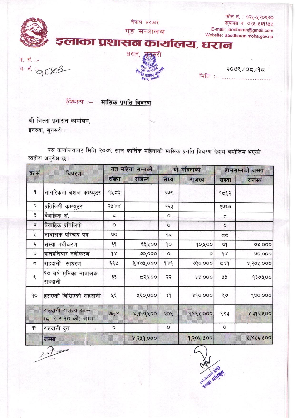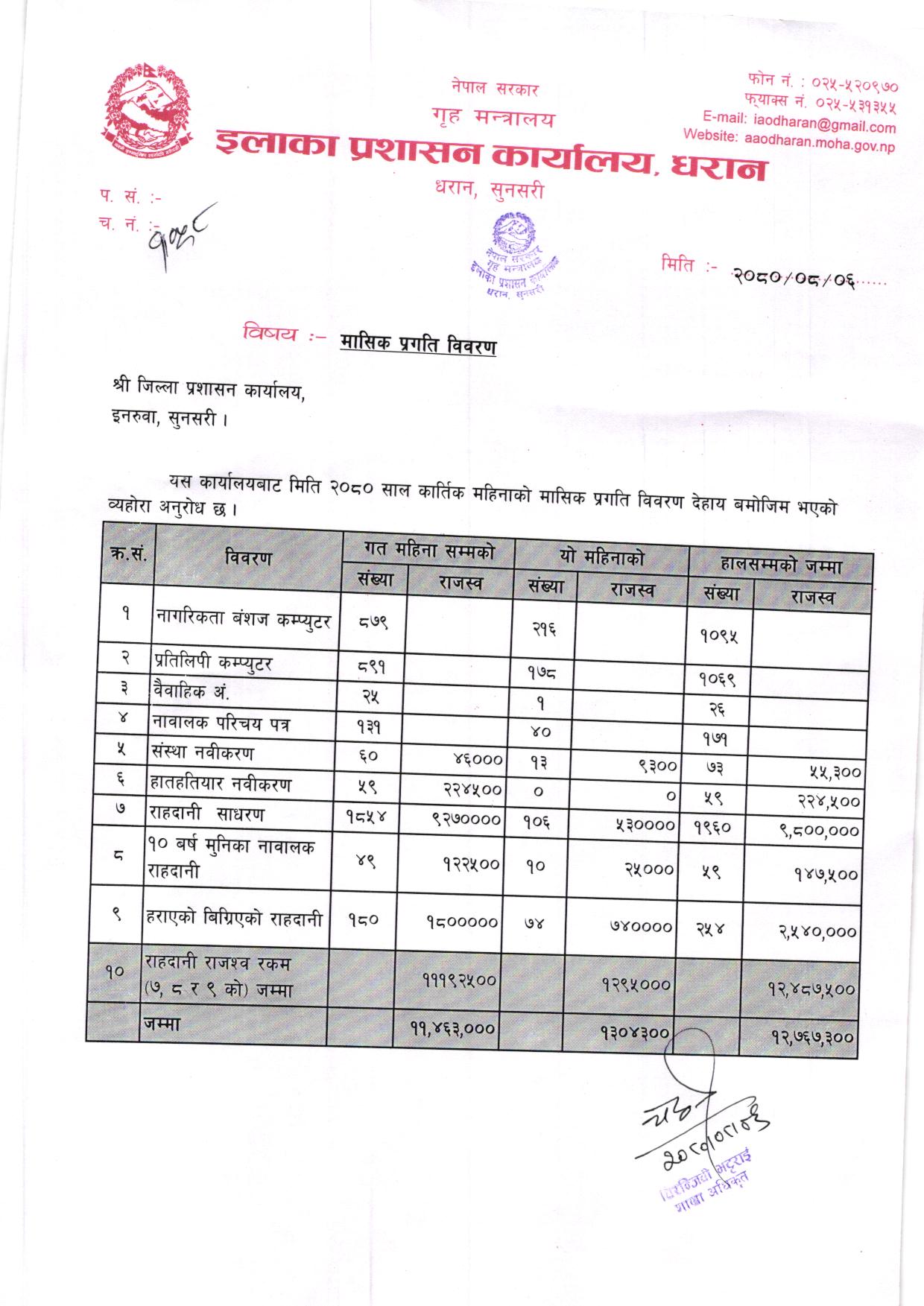 अा. व. ०८०-८१ कार्तिक महिनाकाे मासिक प्रगति विवरण