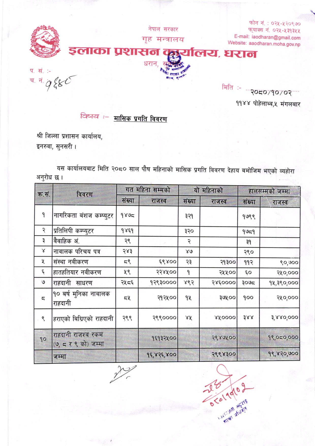 अा. व. ०८०-८१ पाैष महिनाकाे मासिक प्रगति विवरण