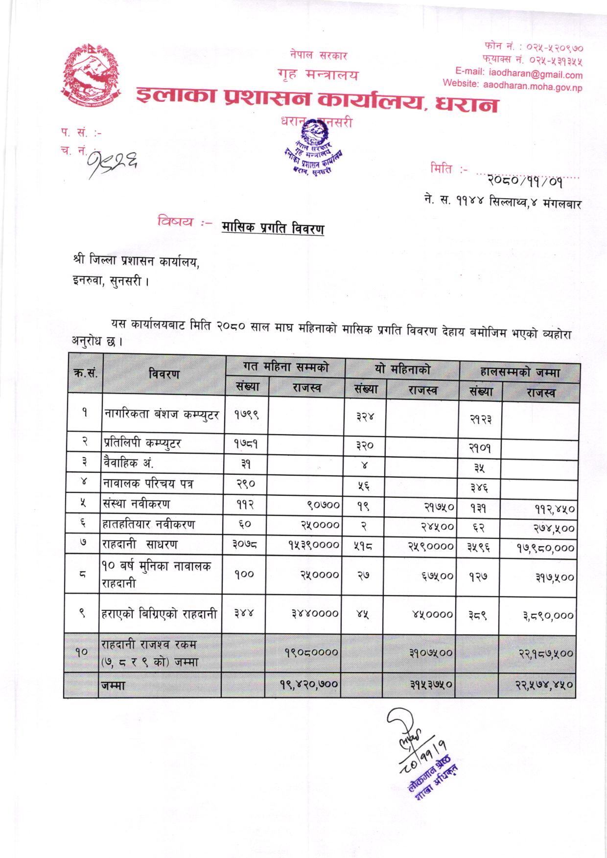 अा. व. ०८०-८१ मंशिर महिनाकाे मासिक प्रगति विवरण