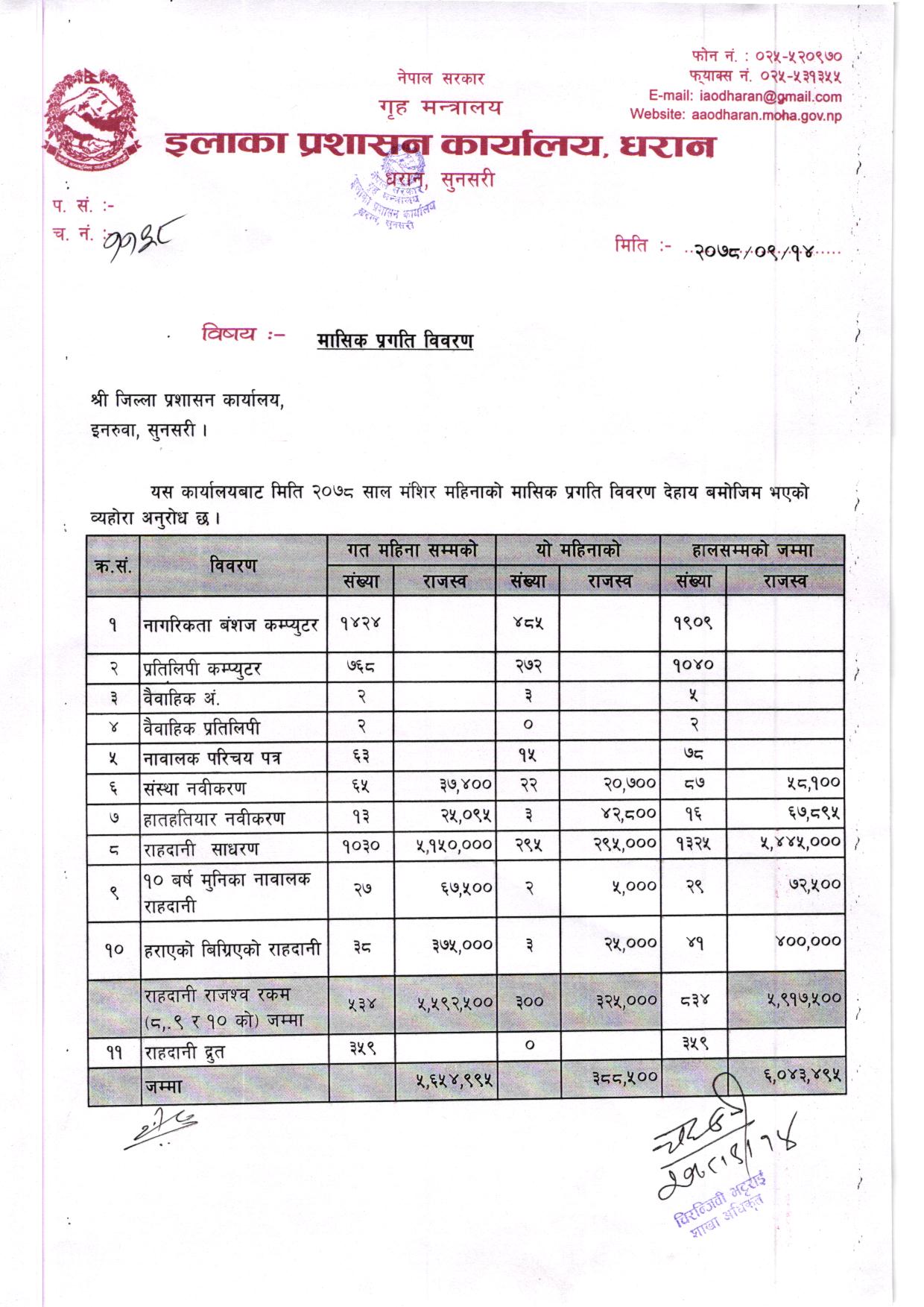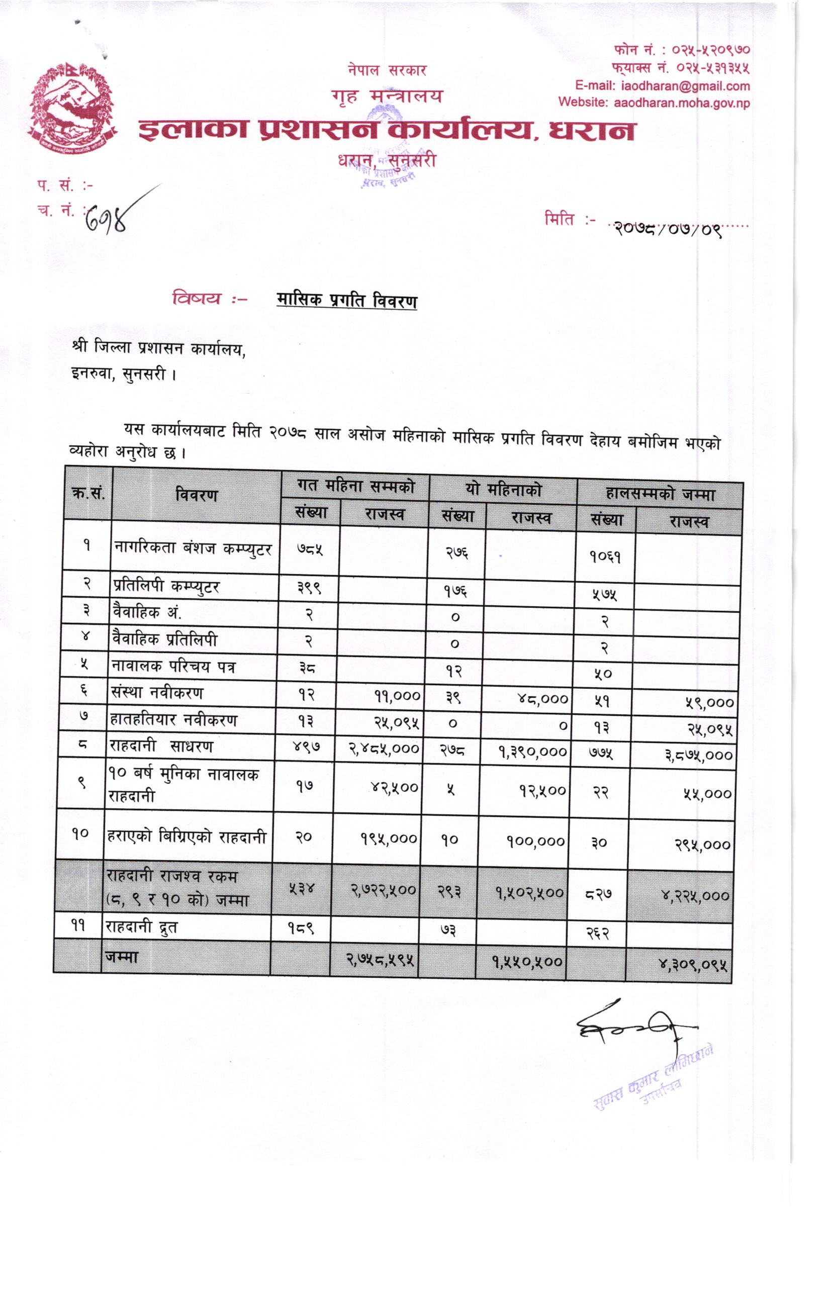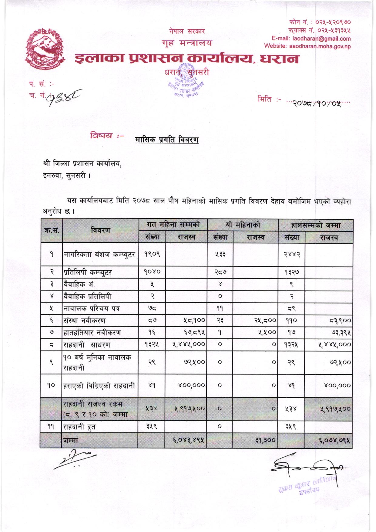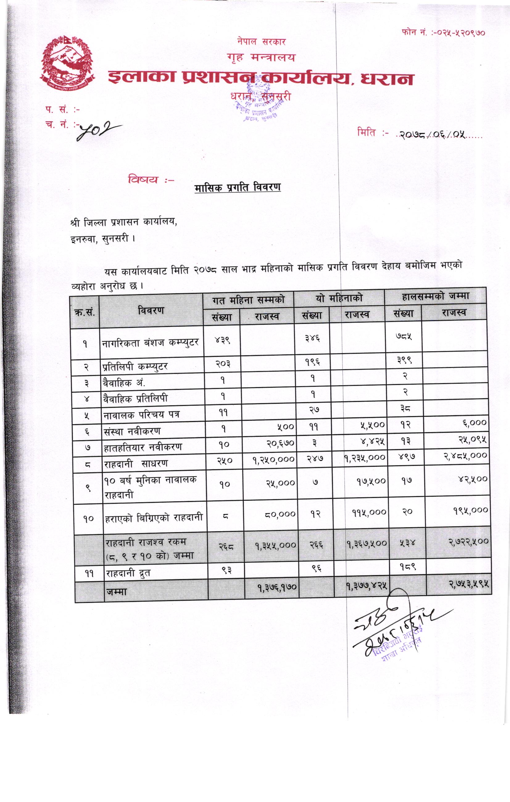 २०७८ साल भाद्र महिनाकाे मासिक प्रगति विवरण