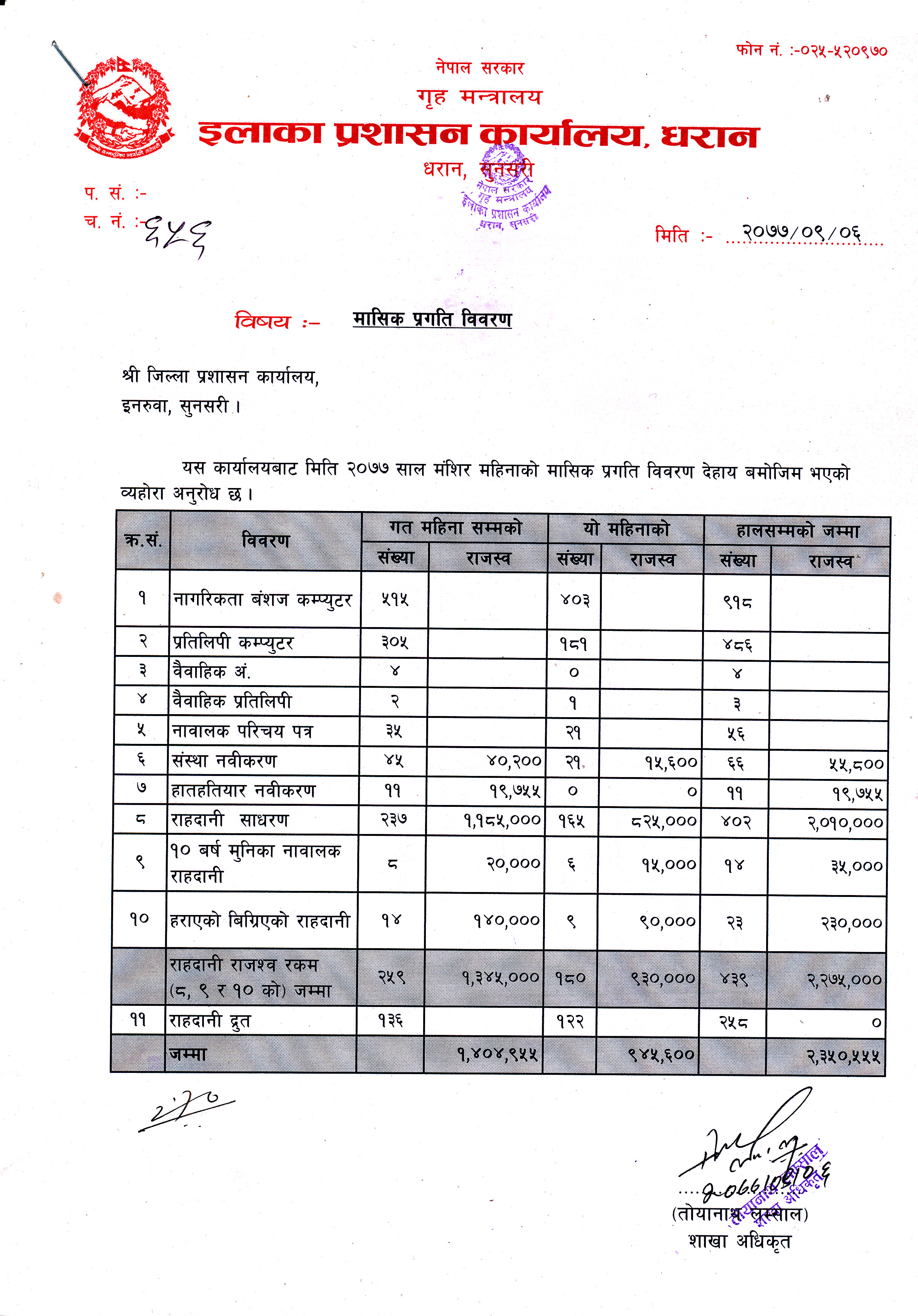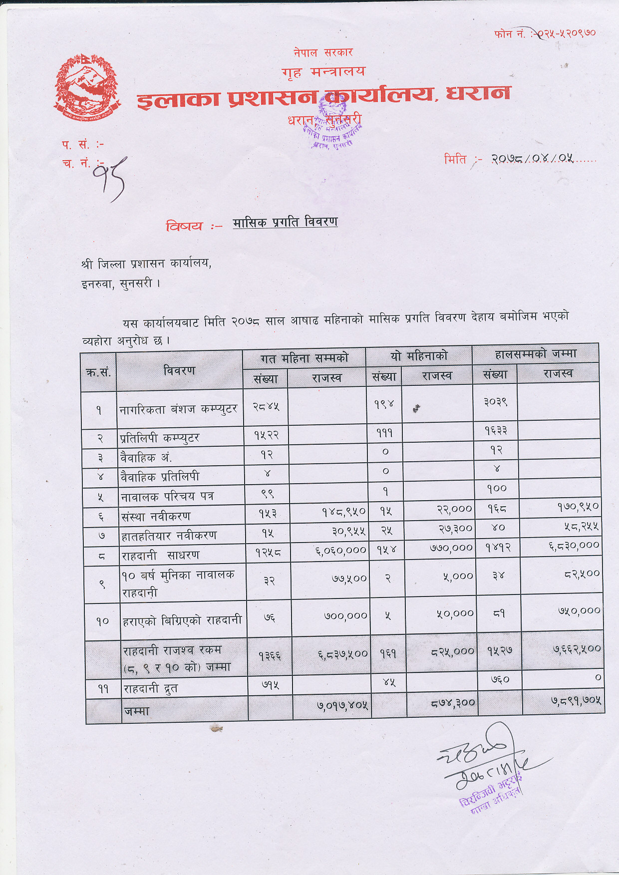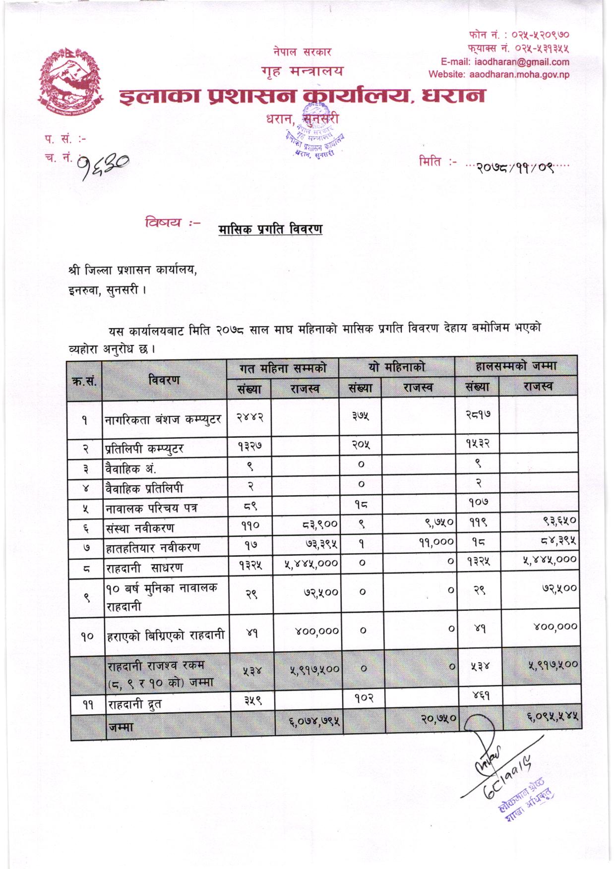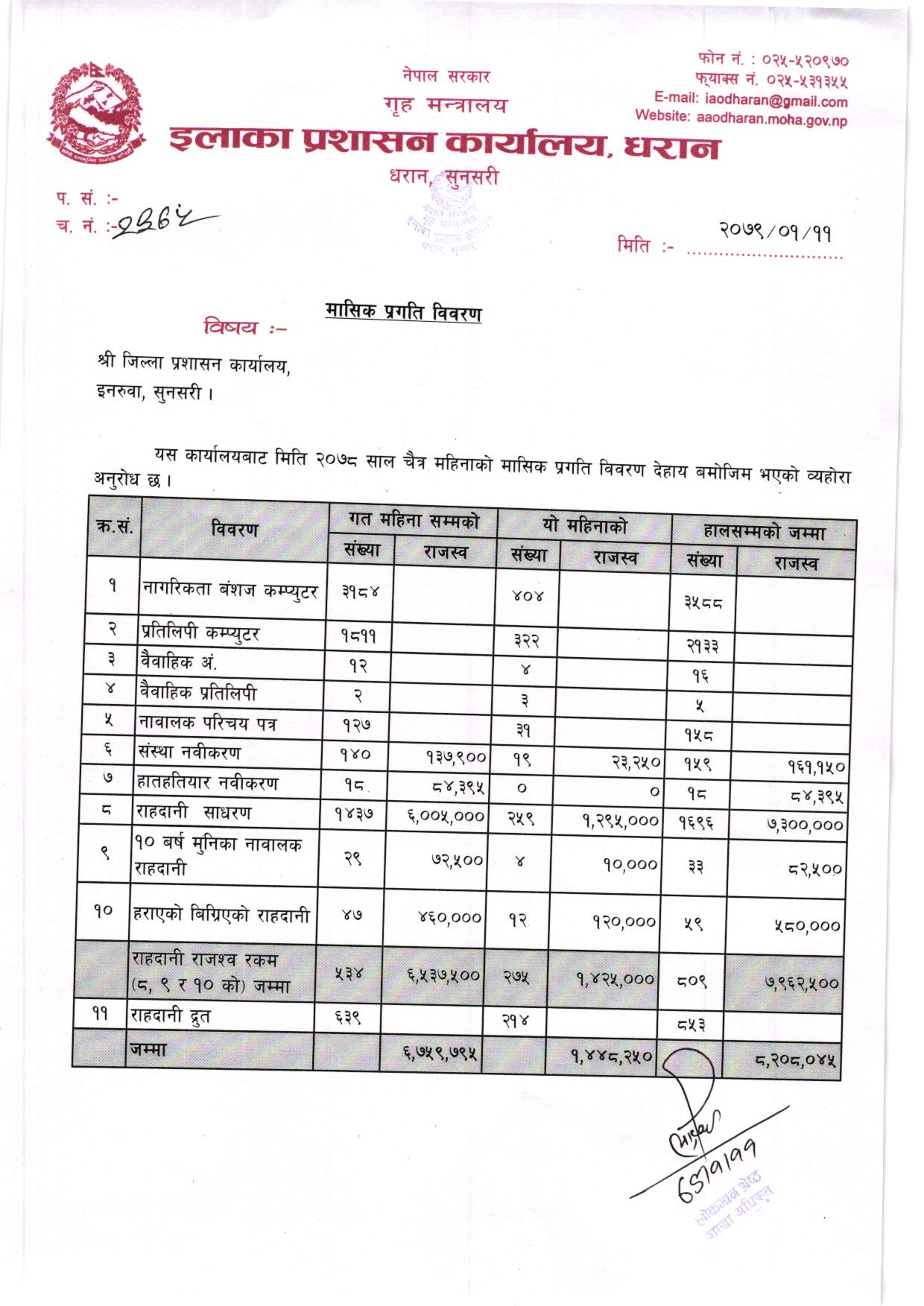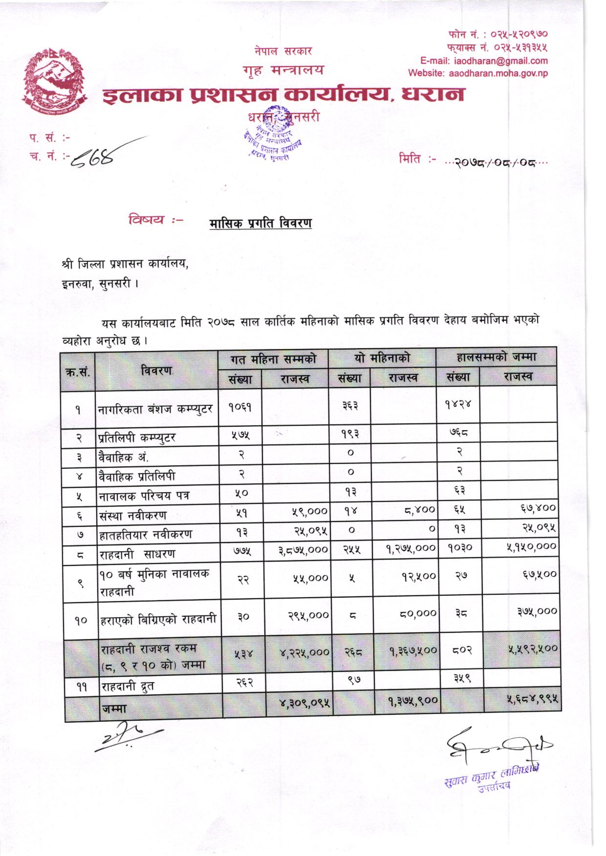 २०७८ साल भाद्र महिनाकाे मासिक प्रगति विवरण