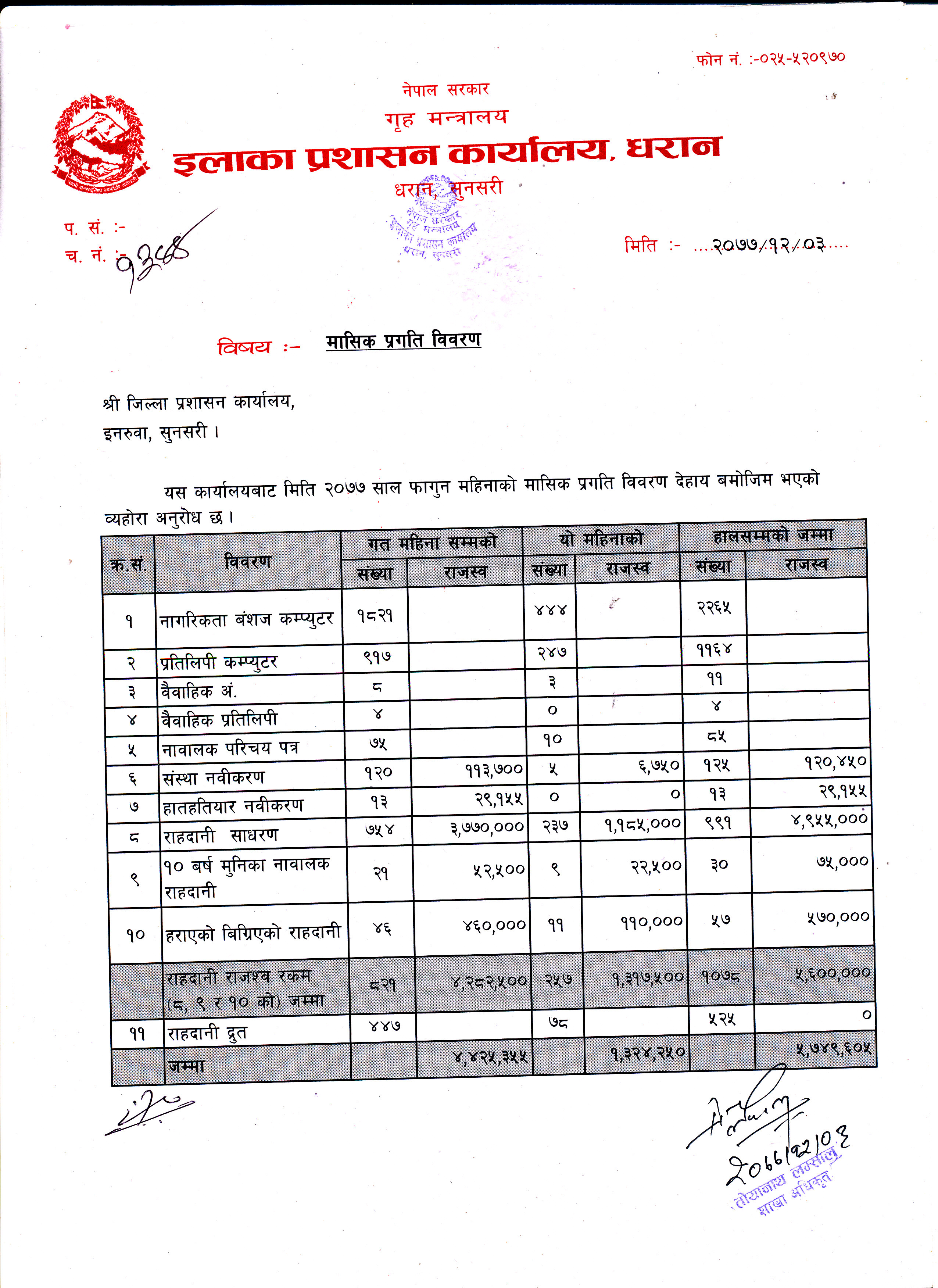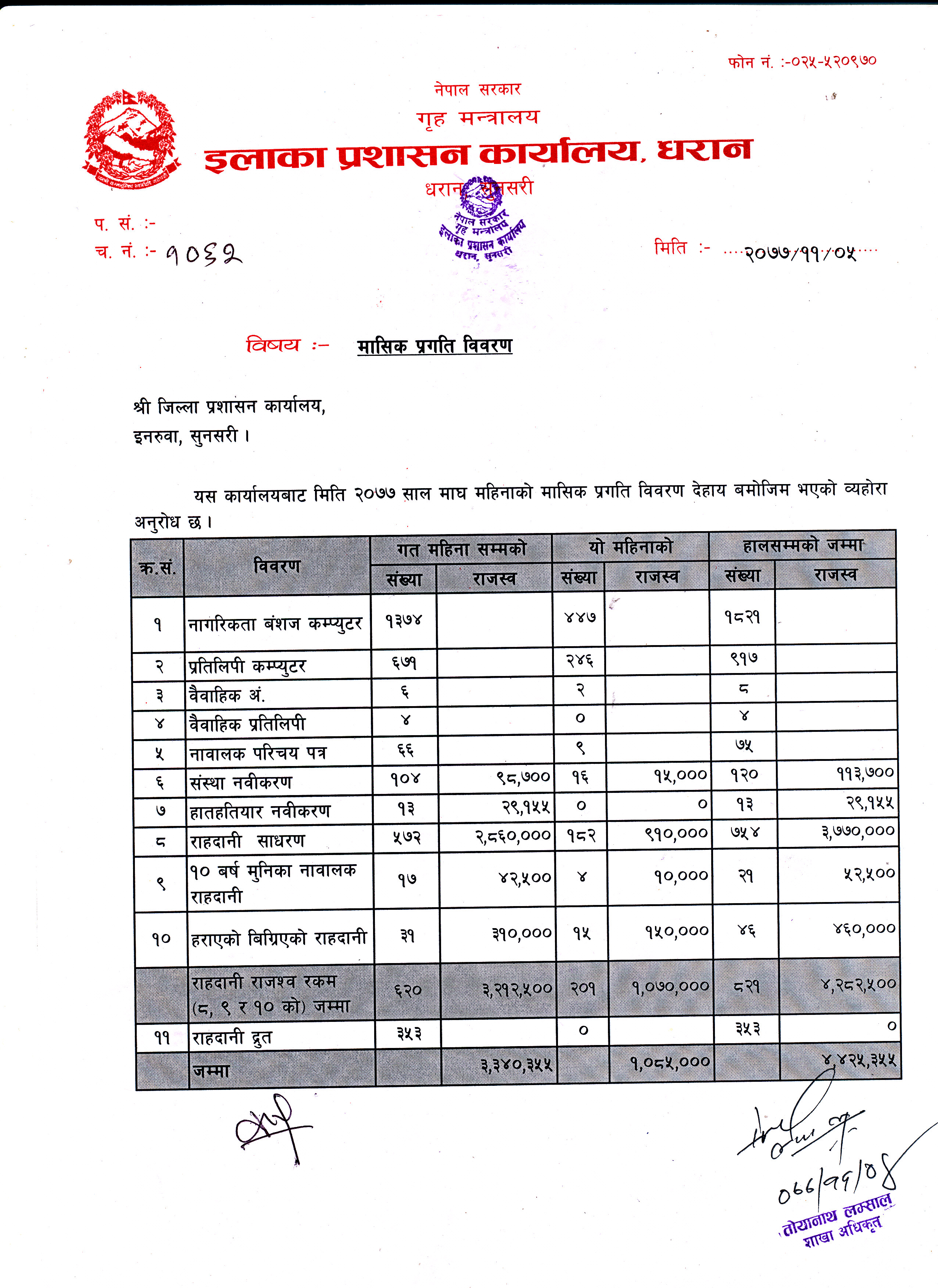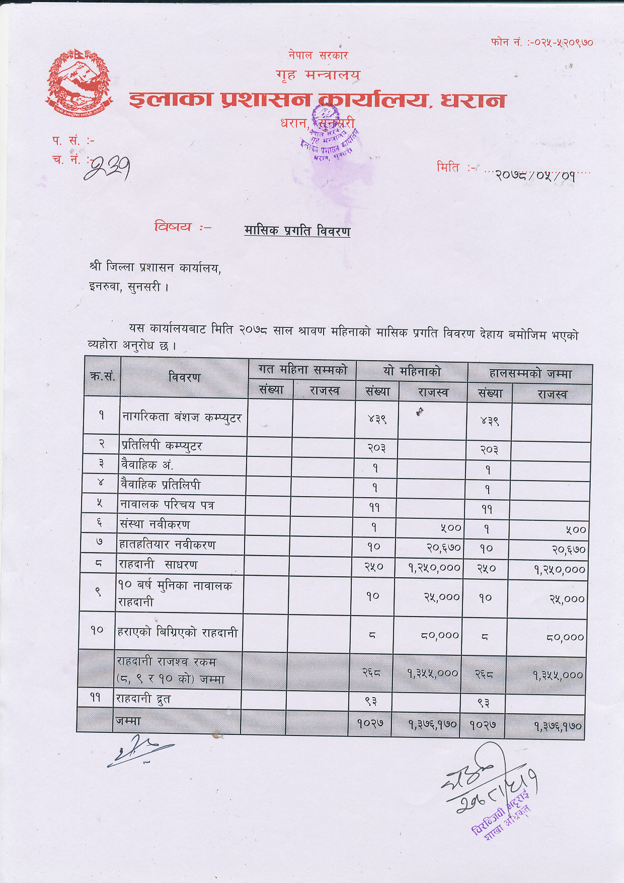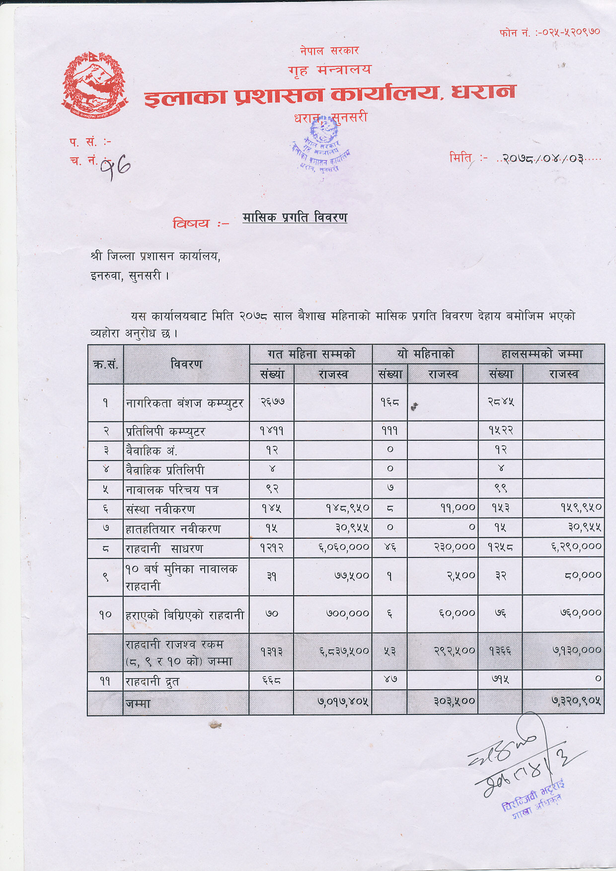 २०७८ साल भाद्र महिनाकाे मासिक प्रगति विवरण