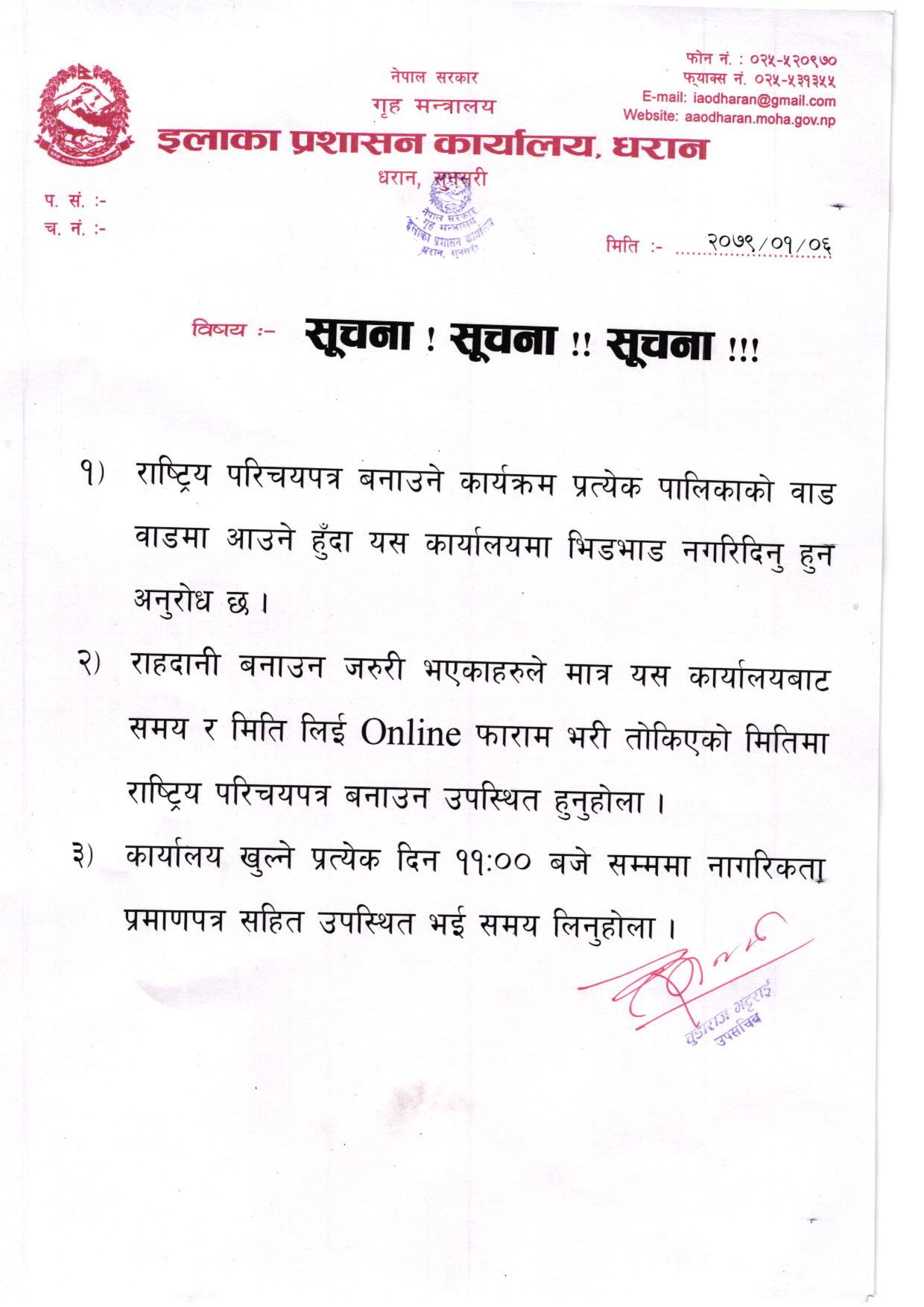 राष्ट्रिय परिचयपत्र सम्बन्धी सूचना ।