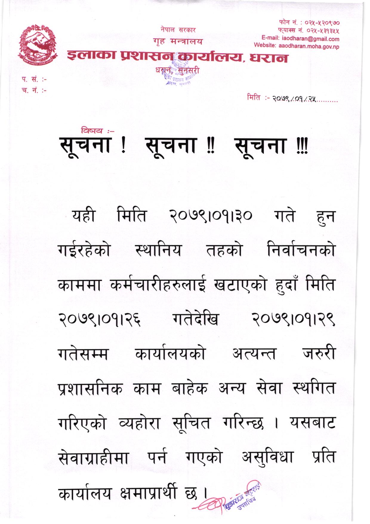 © सर्वाधिकार सुरक्षित ईलाका प्रशासन कार्यालय, धरान, सुनसरी