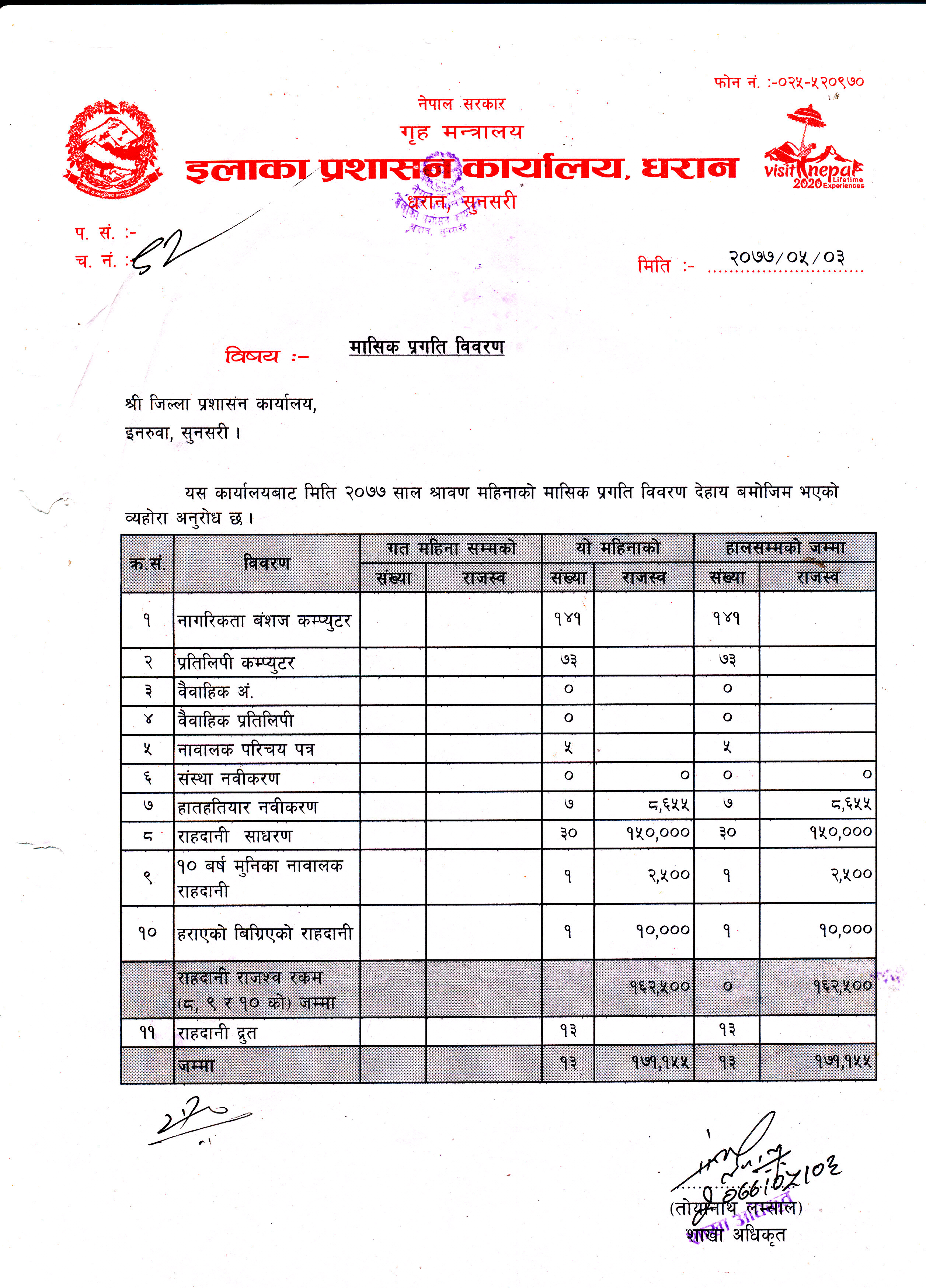 श्रावण महिनाकाे मासिक प्रगति विवरण
