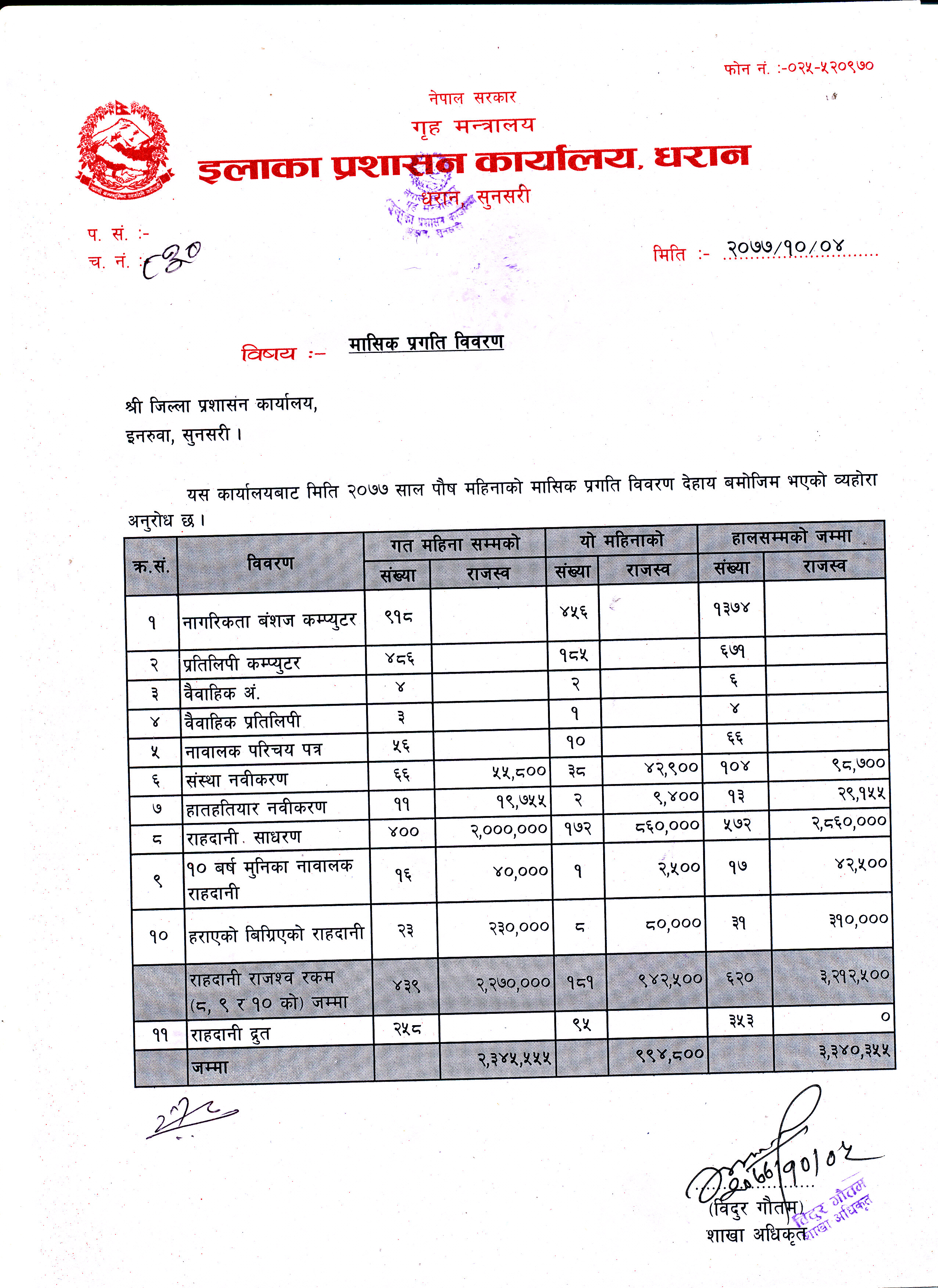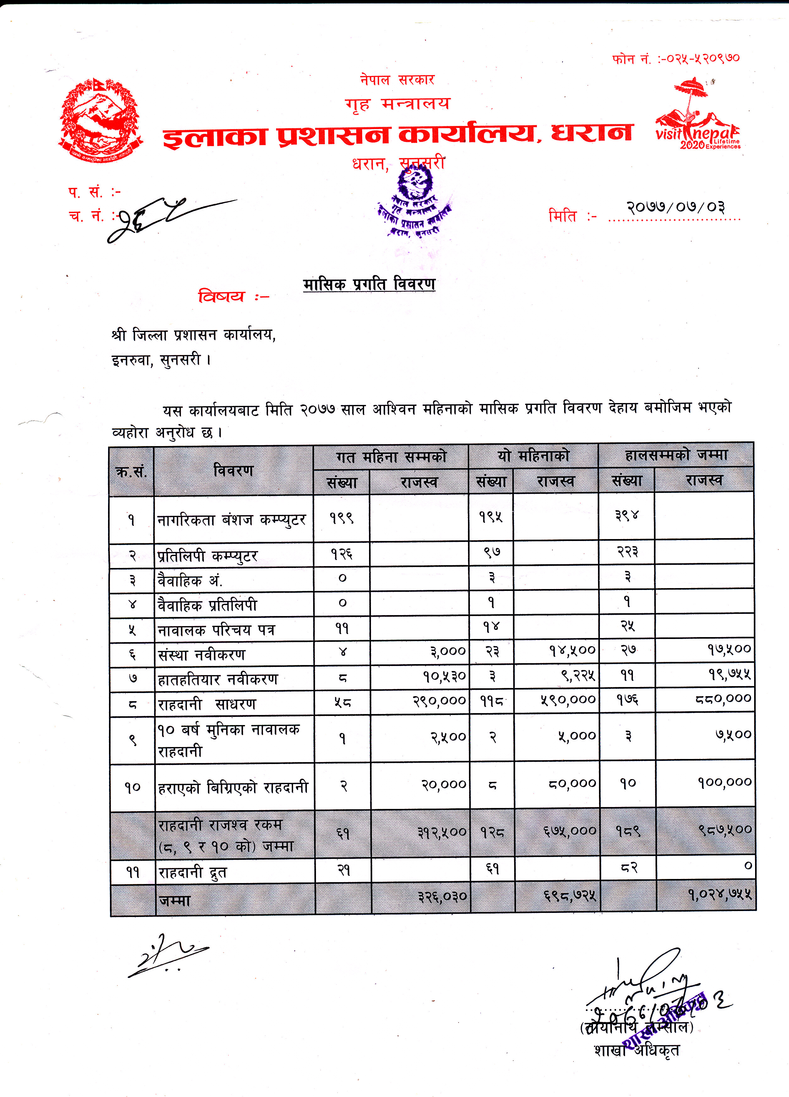 अाश्विन महिनाकाे मासिक प्रगति विवरण