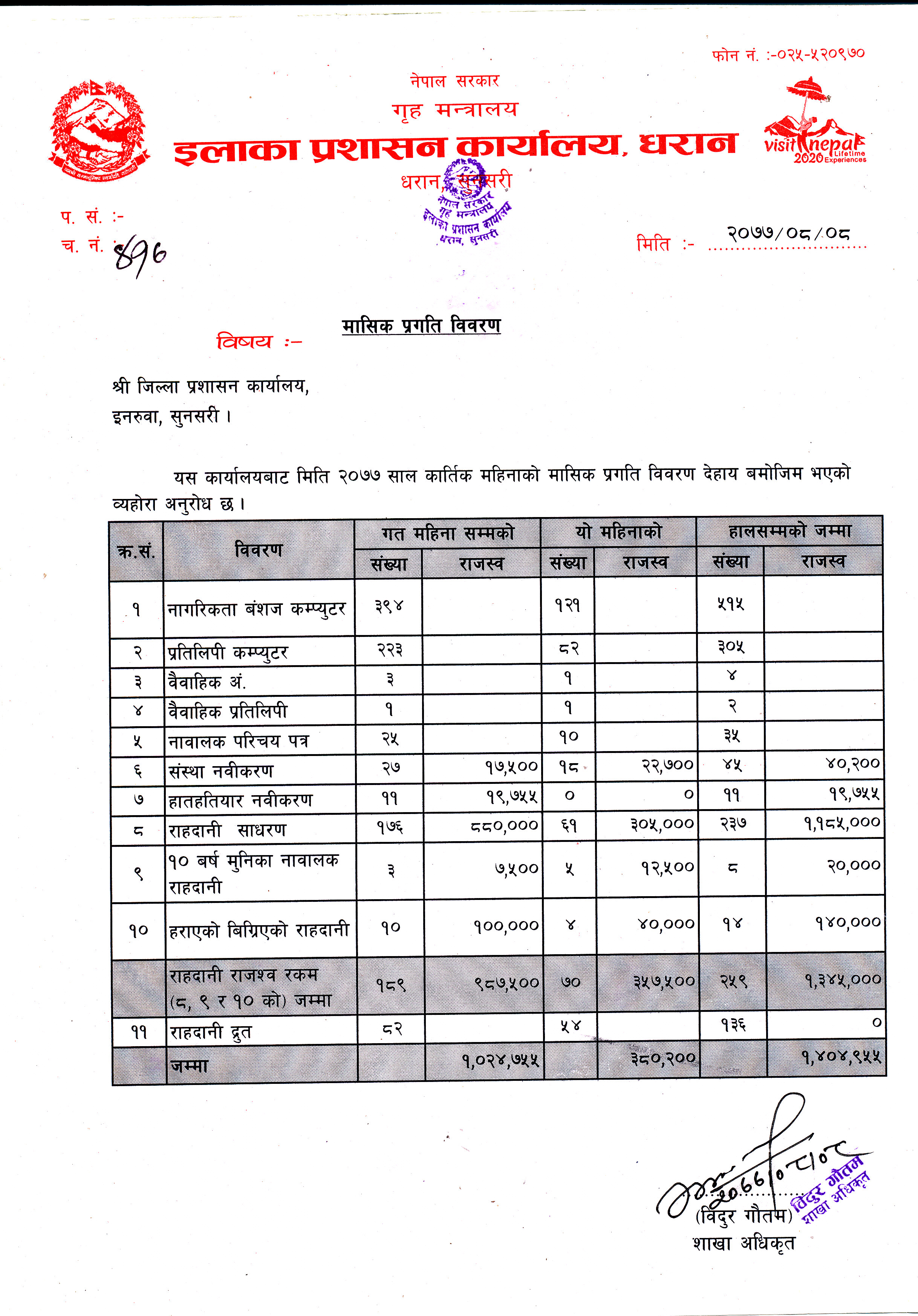 बैशाख महिनाकाे मासिक प्रगति विवरण