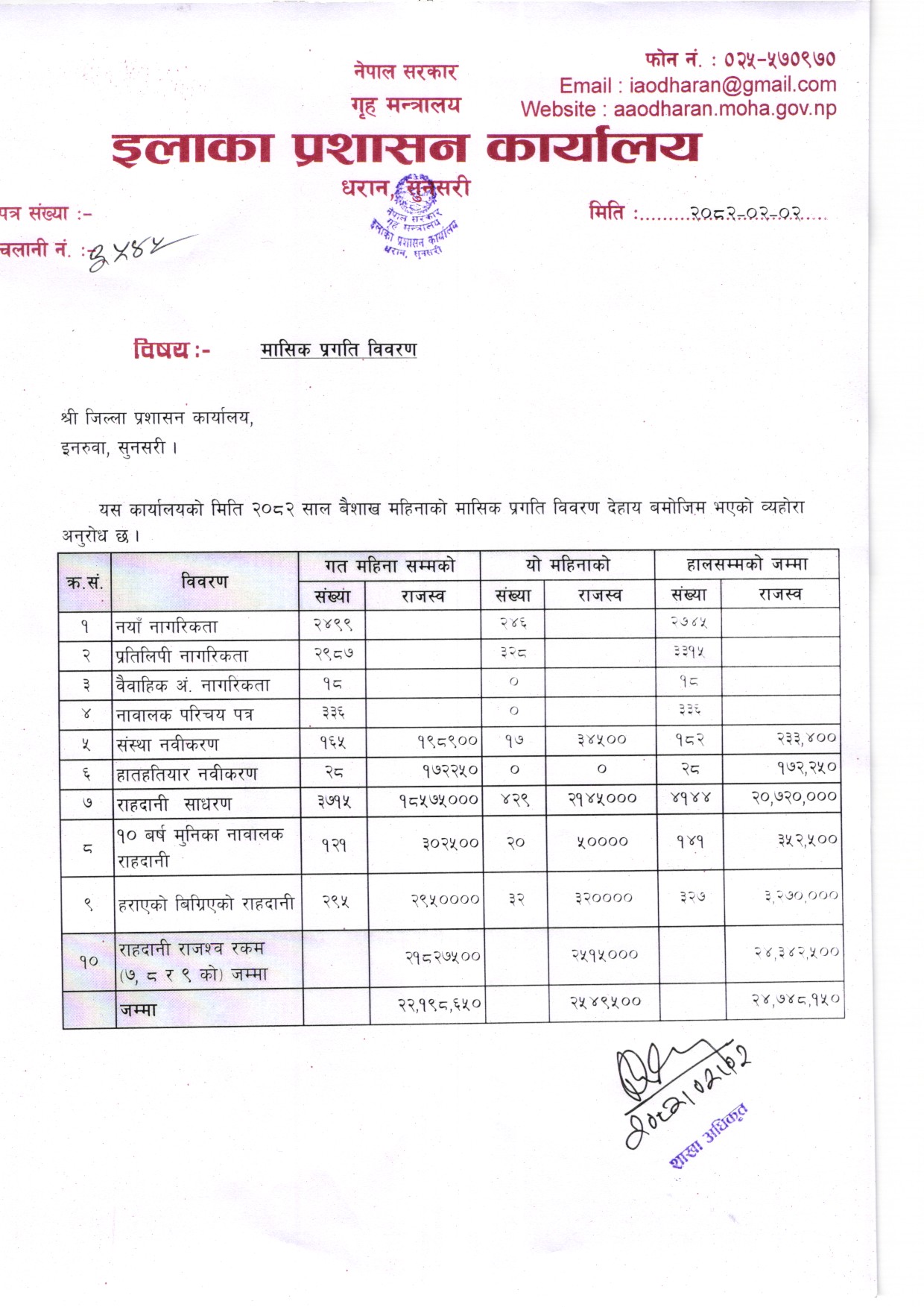 आ. ब. २०८१/८२ बैशाख महिनाकाे मासिक प्रगति विवरण