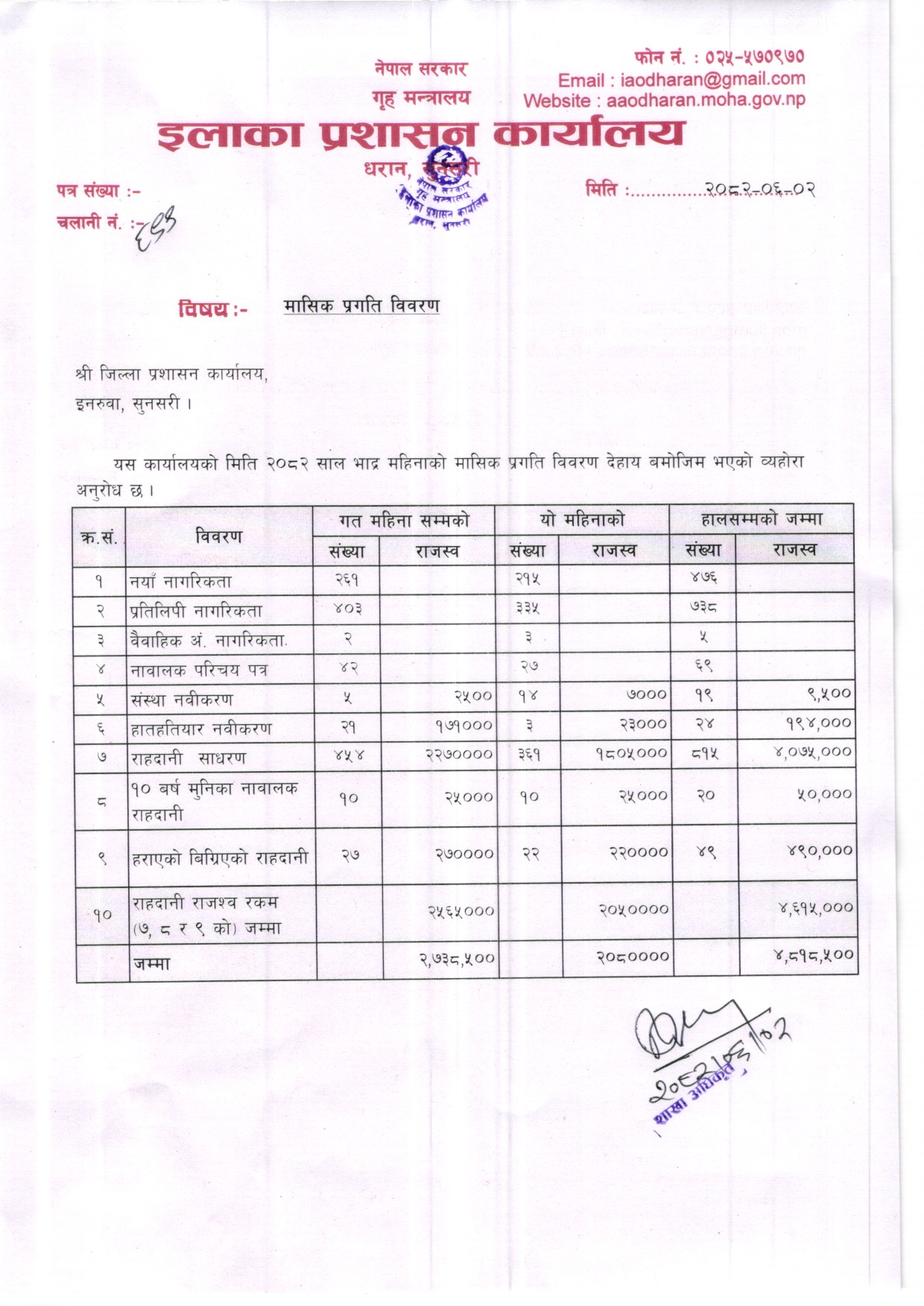 आ. ब. ०८२/०८३ असाेज महिनाकाे मासिक प्रगति विवरण ।