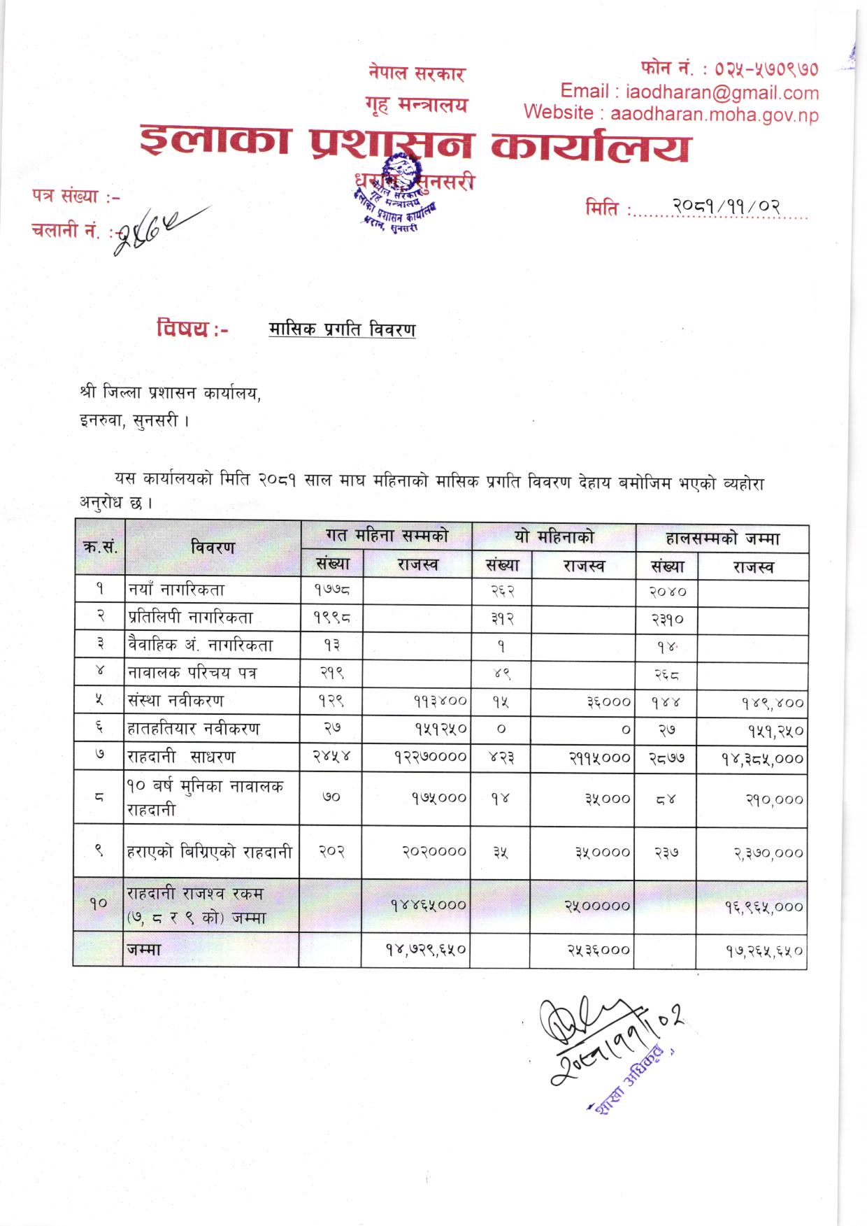 आ. ब. ०८२/०८३ असाेज महिनाकाे मासिक प्रगति विवरण ।