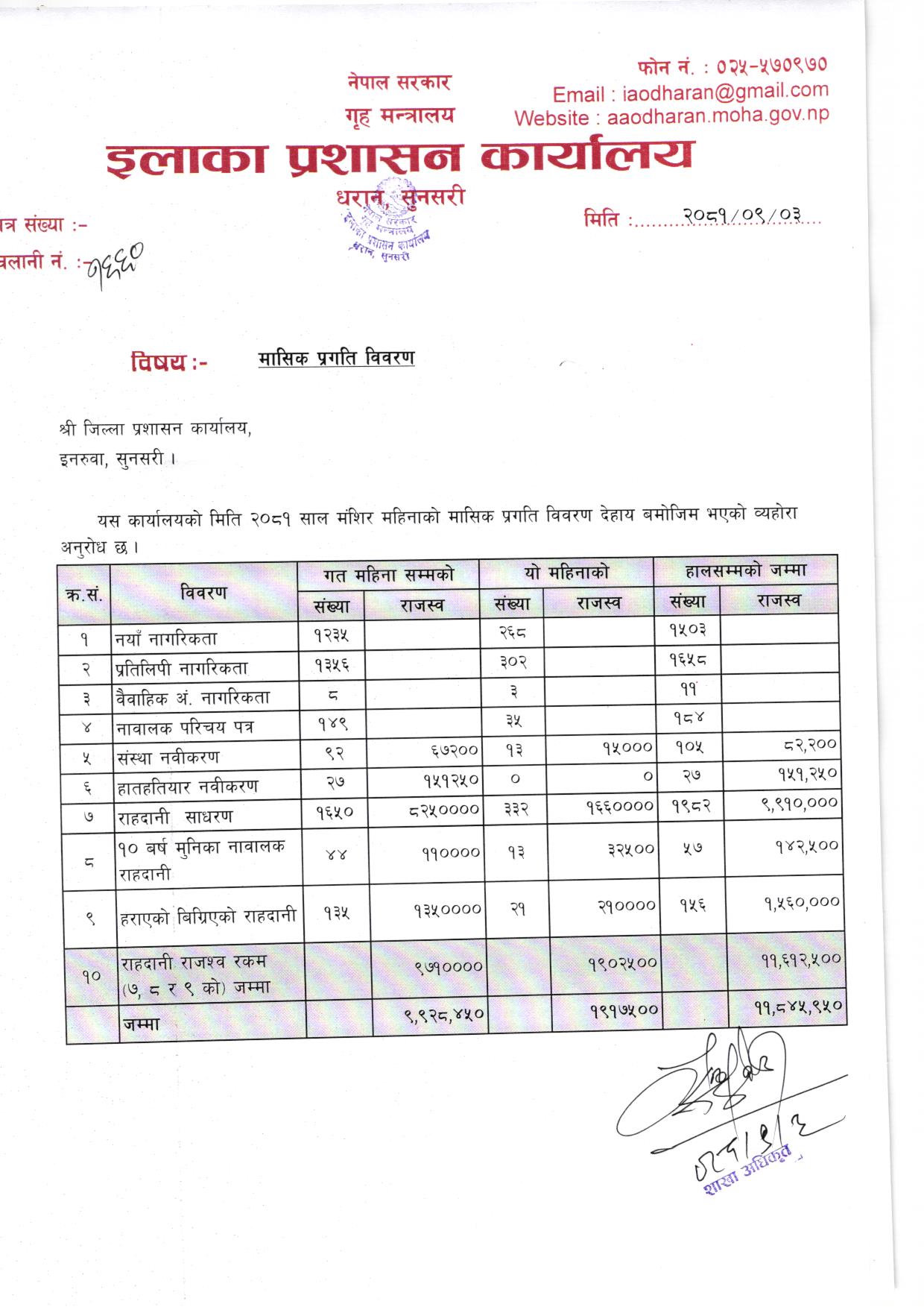 आ. ब. ०८२/०८३ असाेज महिनाकाे मासिक प्रगति विवरण ।
