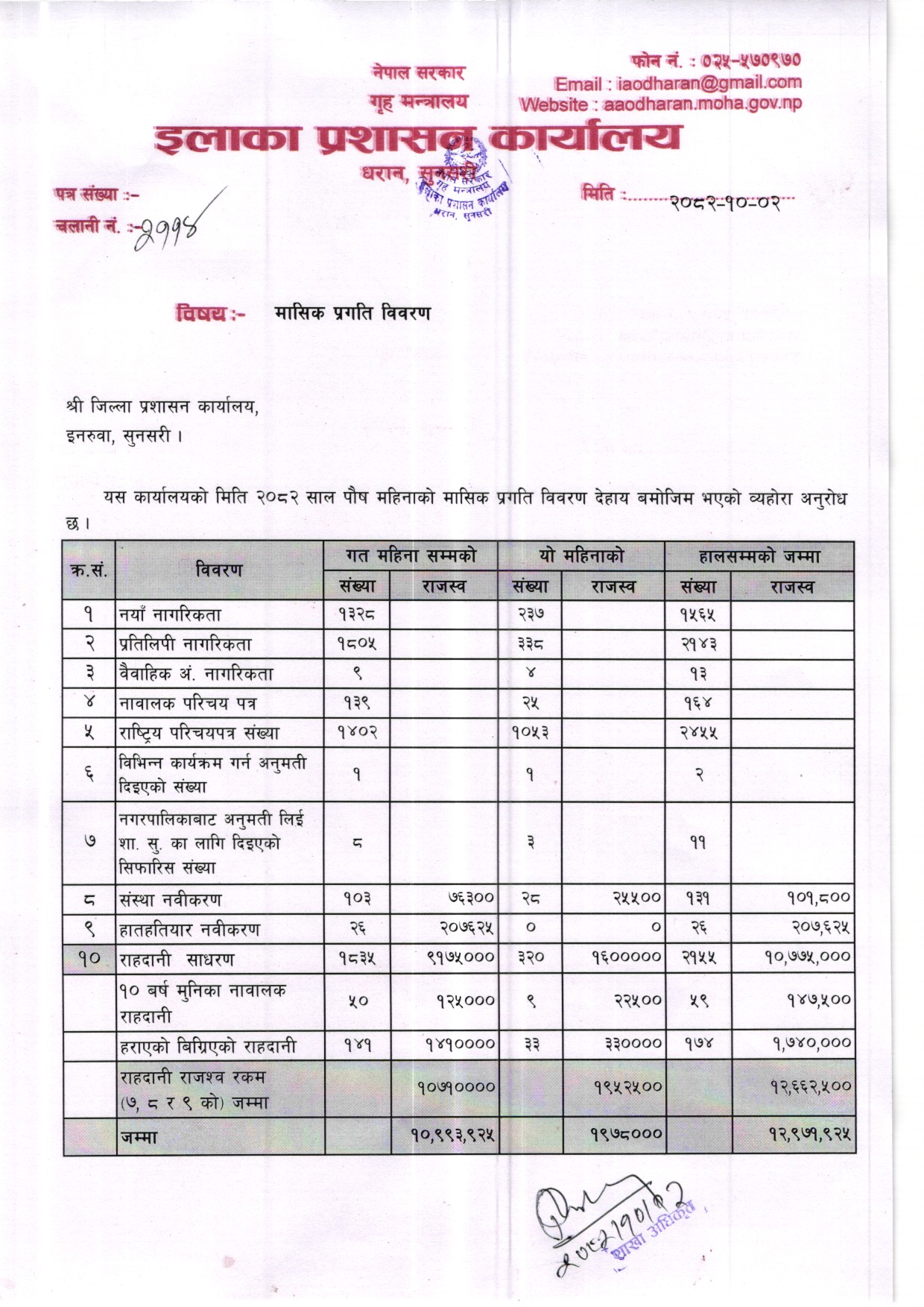 आ. ब. ०८२/०८३ असाेज महिनाकाे मासिक प्रगति विवरण ।
