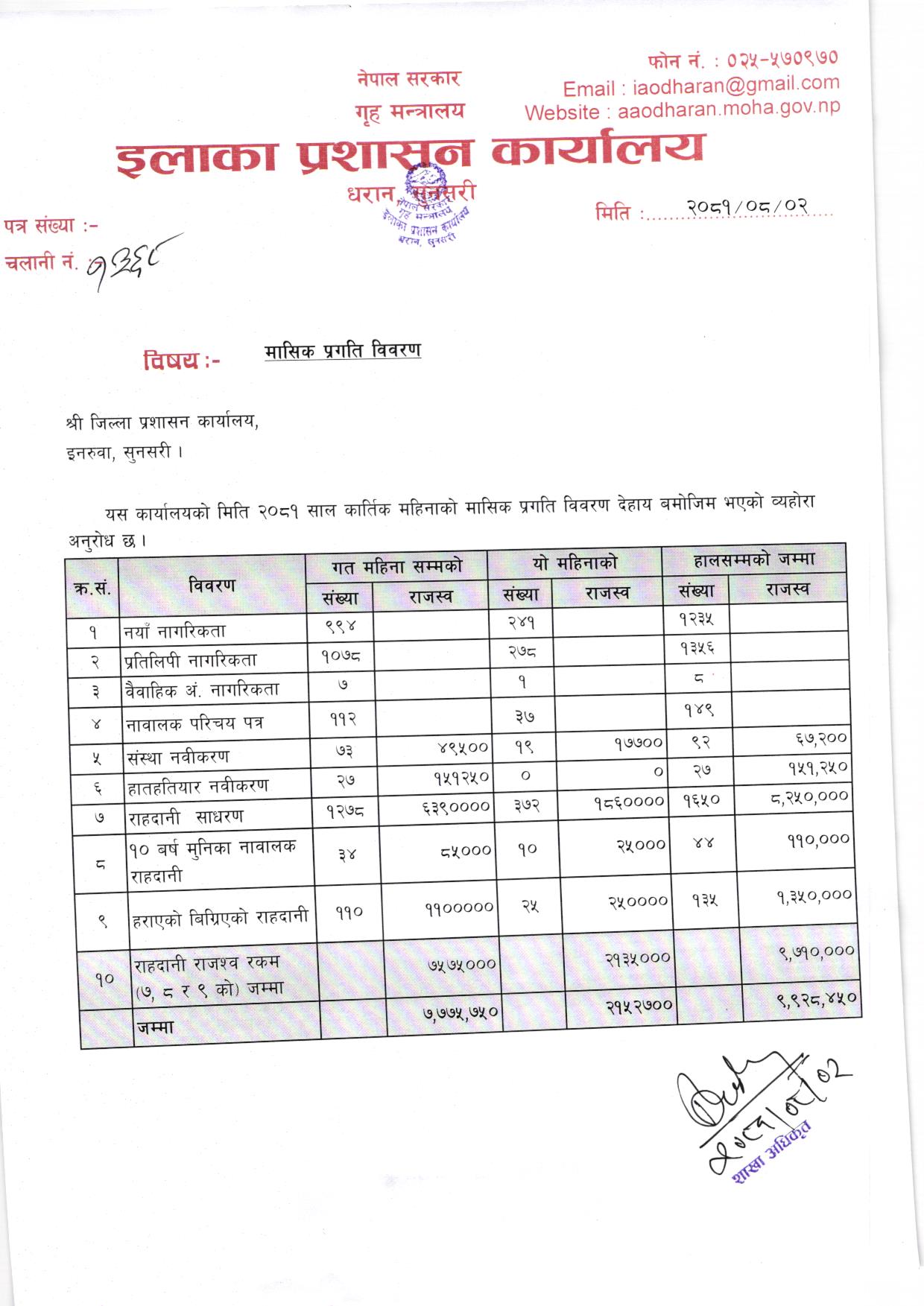 आ. ब. ०८१/८२ सालको कार्तिक महिनाकाे मासिक प्रगति विवरण