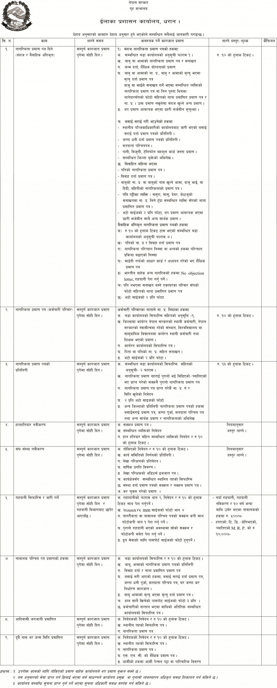कार्यालयकाे नागरिक वडापत्र