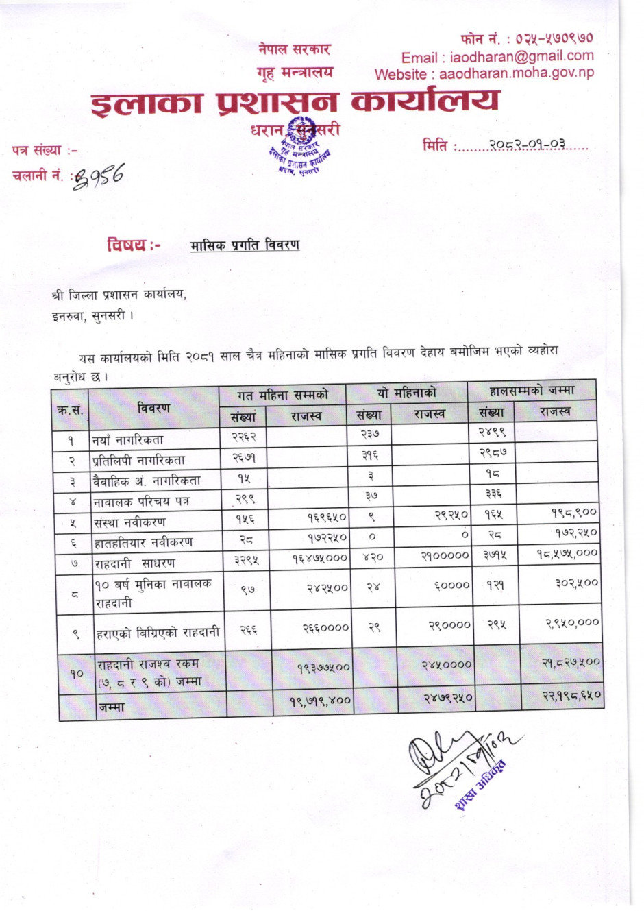 | आ. ब. २०८१/०८२ चैत्र महिनाकाे मासिक प्रगति विवरण |